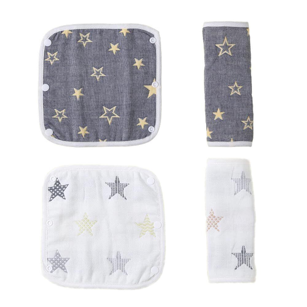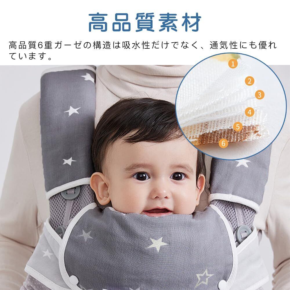CHANGJIQ 抱っこひも用よだれカバー 4枚セット 抱っこ紐 よだれカバー 綿100% 6重ガーゼ だっこひも よだれかばー おでかけ よだれパッド涎カバー 柔らかい チャイルドシート兼用 ベビー 出産祝い ギフト (A)