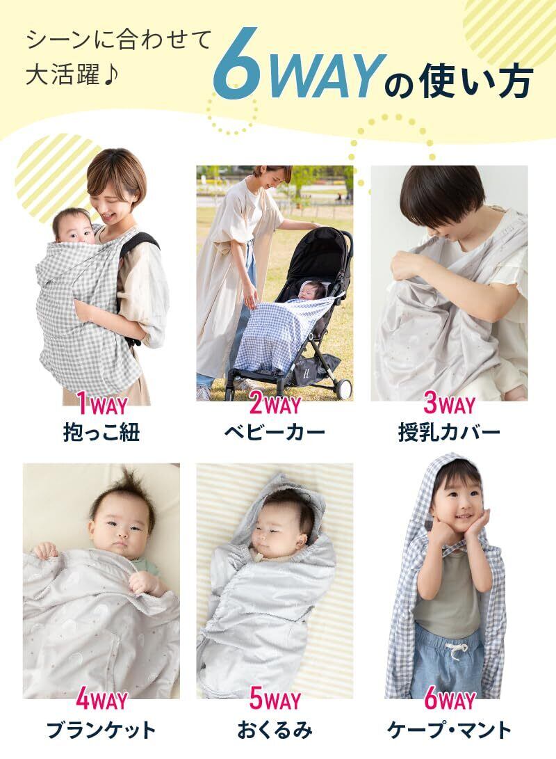 紫外線から大切な赤ちゃんを守るUVケープがケラッタから新登場 ケラッタのUVケープはサイズ調節が可能で使い方もとってもシンプル。 新生児からはもちろん、大きくなってもお使い頂けます 【6WAY仕様!】 様々なタイプの抱っこ紐やベビーカーへの取付けが可能なのはもちろん、 授乳時のカバーやブランケット、おくるみやマントなど 屋外室内問わず、様々なシーンで役に立つこと間違いなしの6WAY仕様