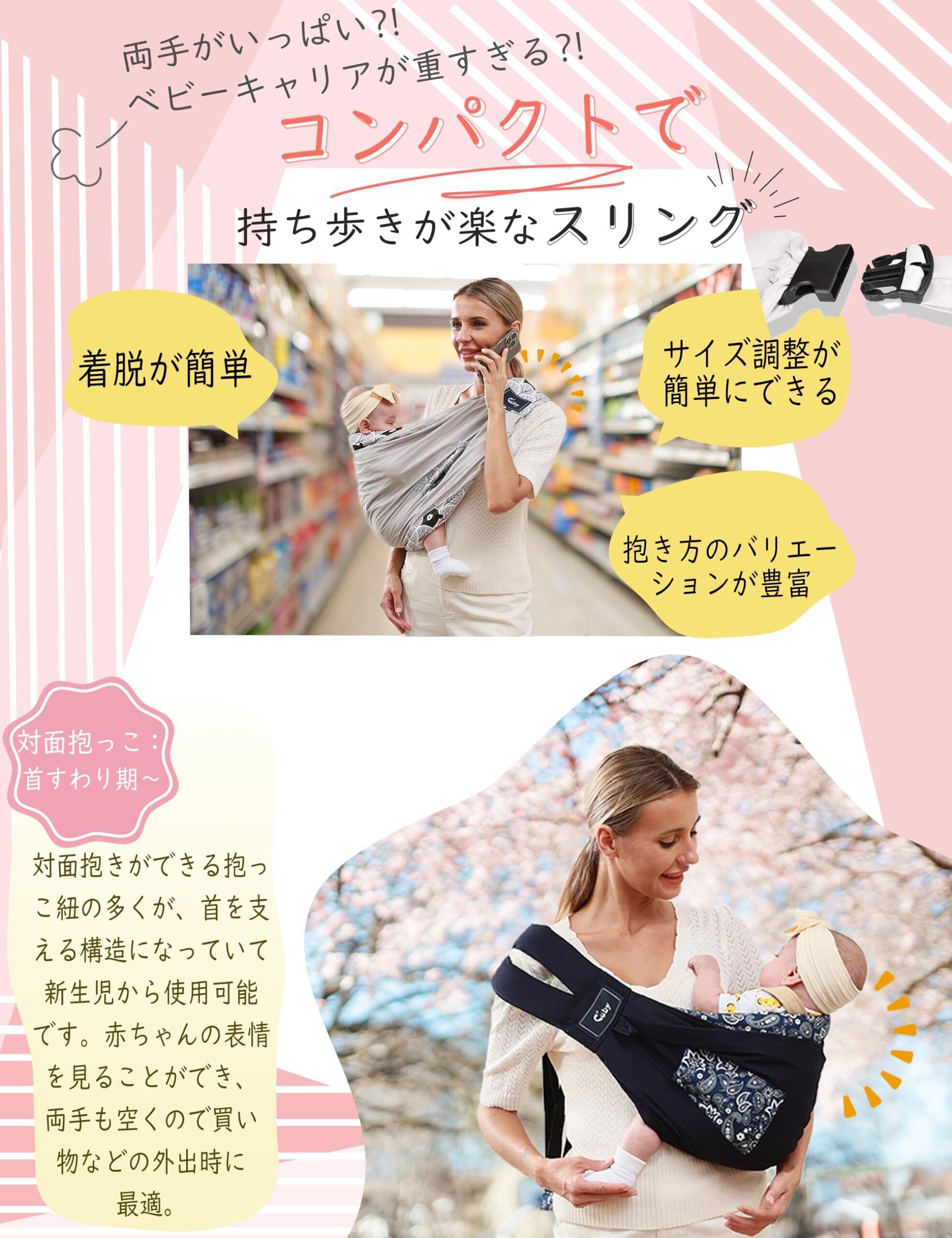 【スリング新生児のハイライト】ママとパパも自由に調節と折り畳みます。赤ちゃんを胸と腹の間に置きます。 CUBYベビースリングの布の生地は特殊な処理が施されたので、肌触りが良くざらざらした感じがありません。