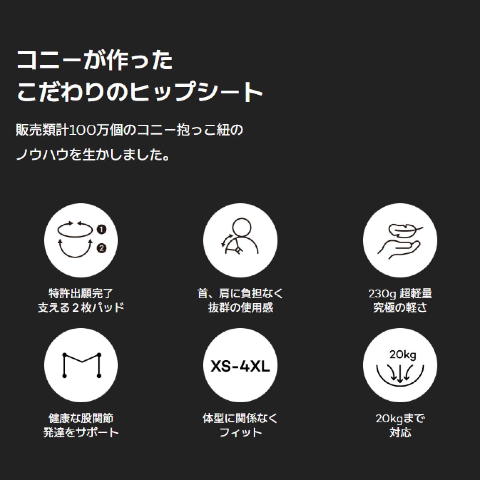[Konny]コニー安心 ヒップシート抱っこ紐 サイズ調節 ママパパ兼用 国際安全認証取得 IHDI 公式認証 収納袋付き 超軽量 230g 抱っこ紐 20kgまで対応 (チャコール)