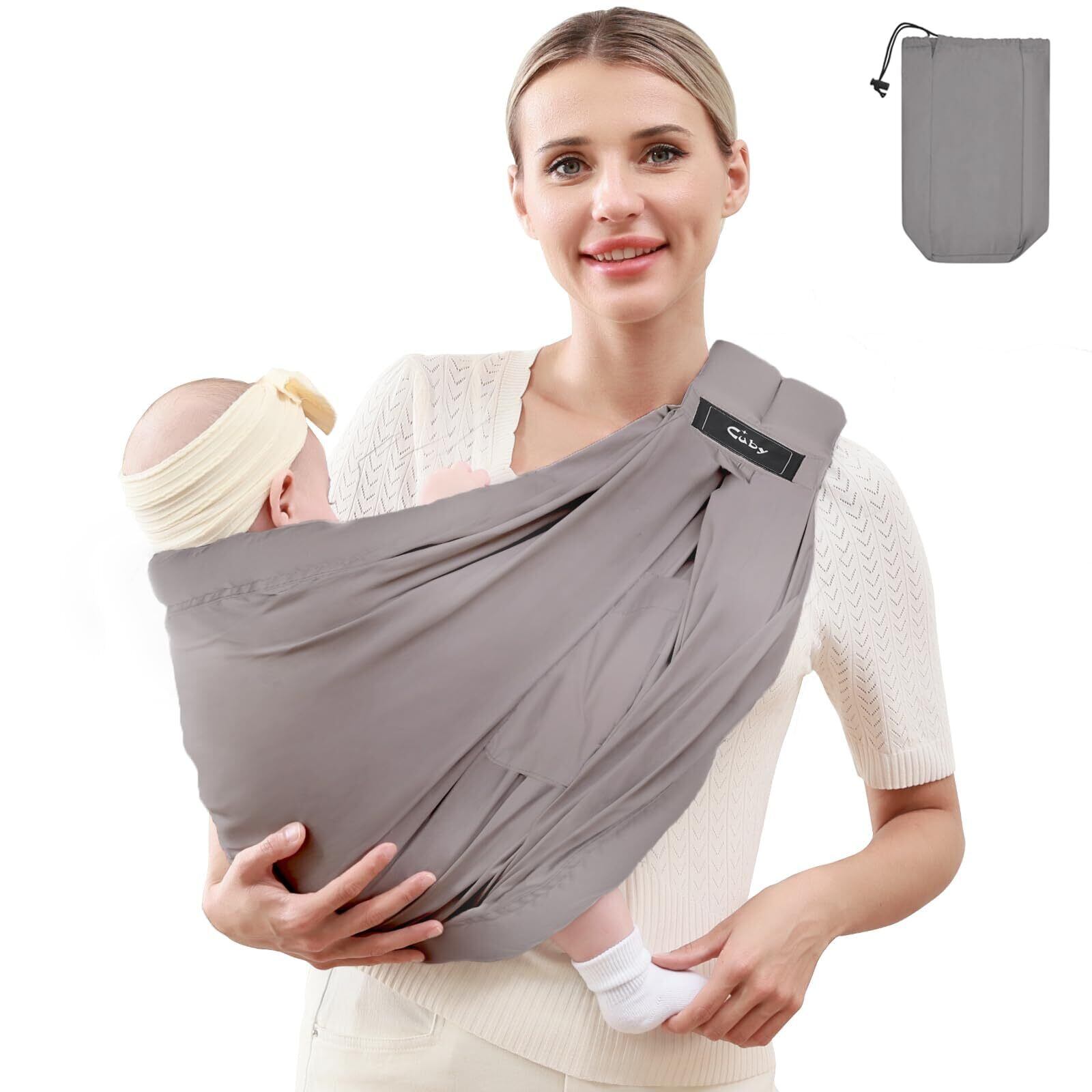 抱っこ紐 新生児 CUBY ベビースリング 横抱きだっこひも ベビーキャリア 赤ちゃん首座り前 スリング 人気おんぶひも 収納袋付き 新生児から使える 0~2歳 説明書あり(ダークグレー)