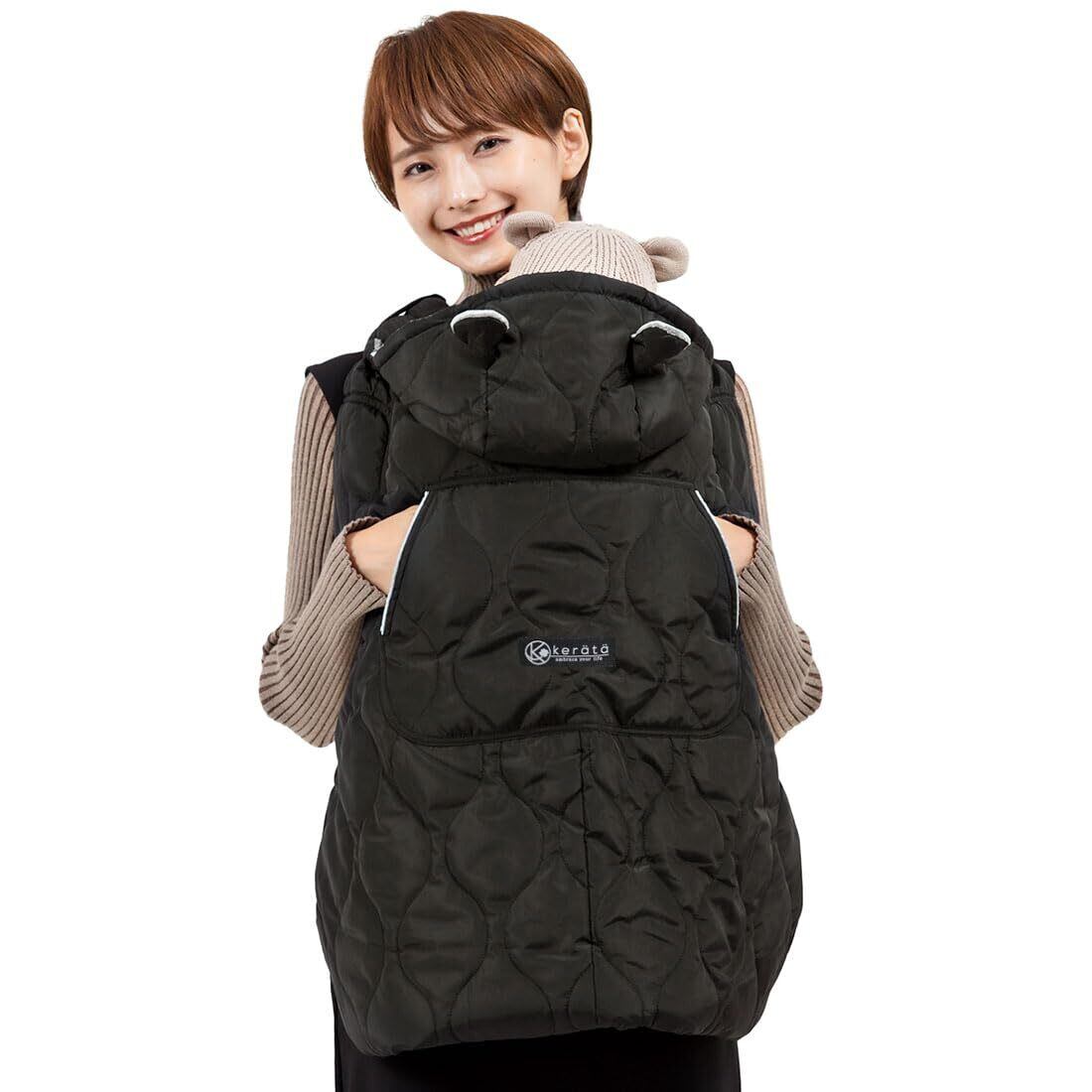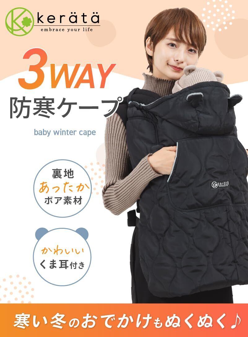 (ケラッタ) 抱っこ紐 防寒 ケープ ベビーカーブランケットにもなる 撥水加工 抱っこひも 防寒カバー (ブラック キルト)