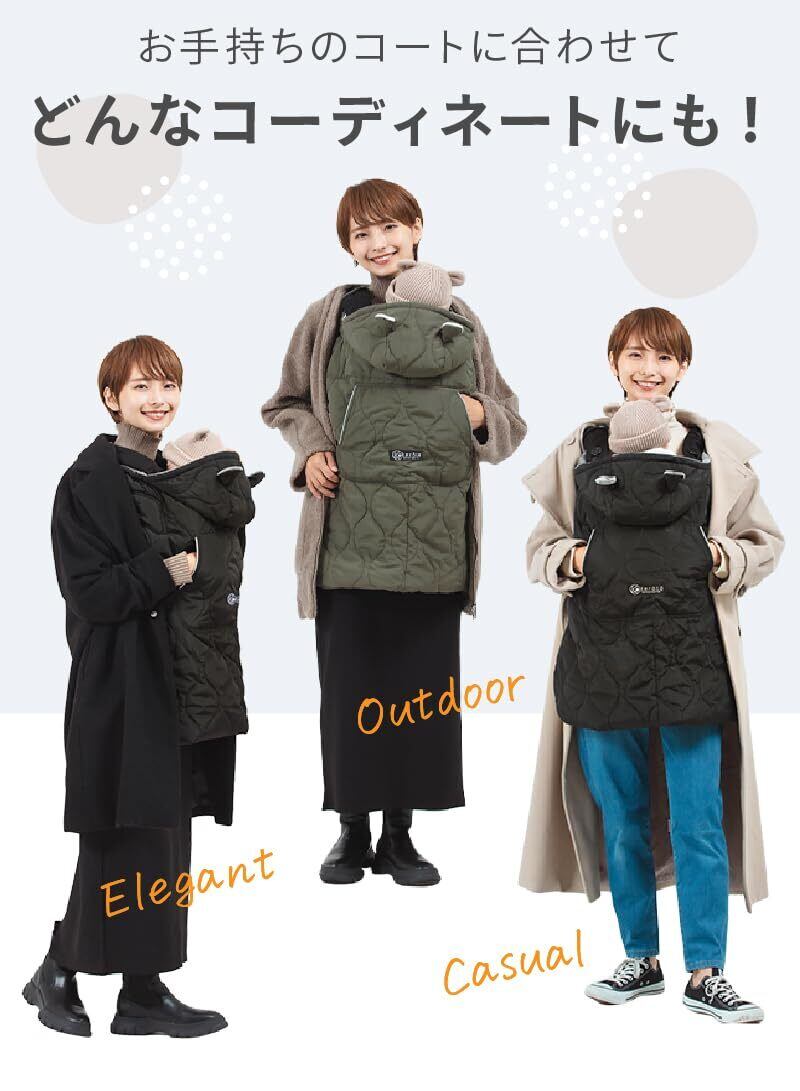 【在庫処分】(ケラッタ) 抱っこ紐 防寒 ケープ ベビーカーブランケットにもなる 撥水加工 抱っこひも 防寒カバー (ブラック キルト)