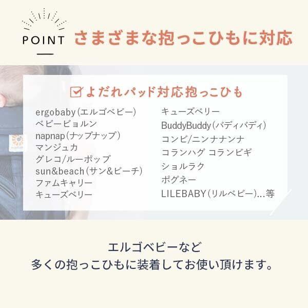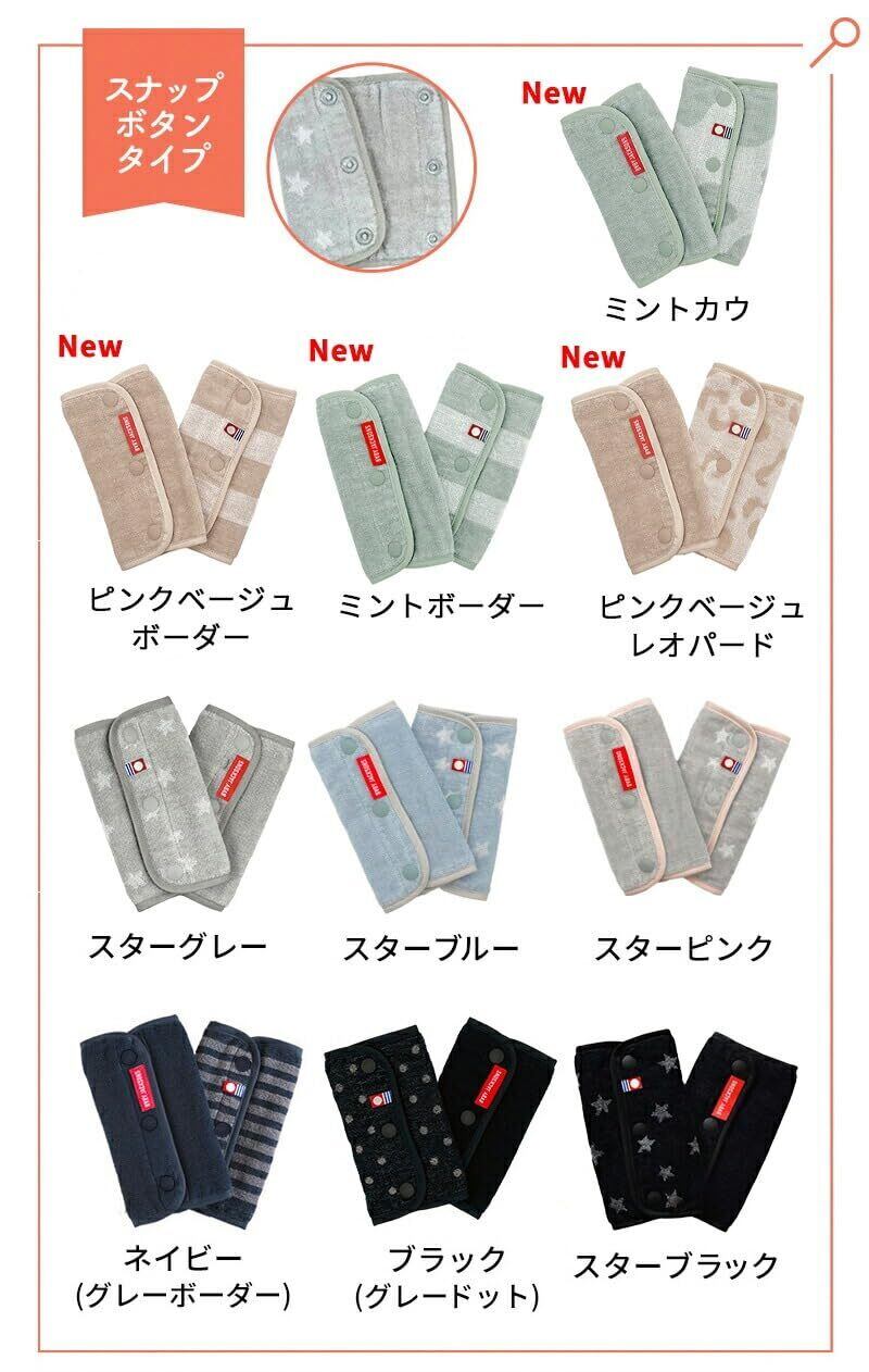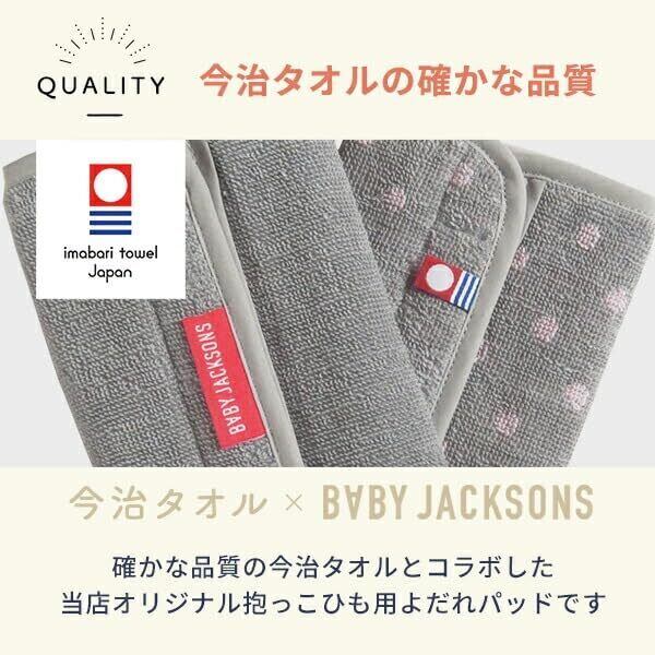 今治タオルのよだれパッド。肌ざわり、吸水性に優れ、リバーシブルでお使いいただくことができます。 抱っこ紐の肩ひもに巻き付け、ボタンでとめるタイプです。