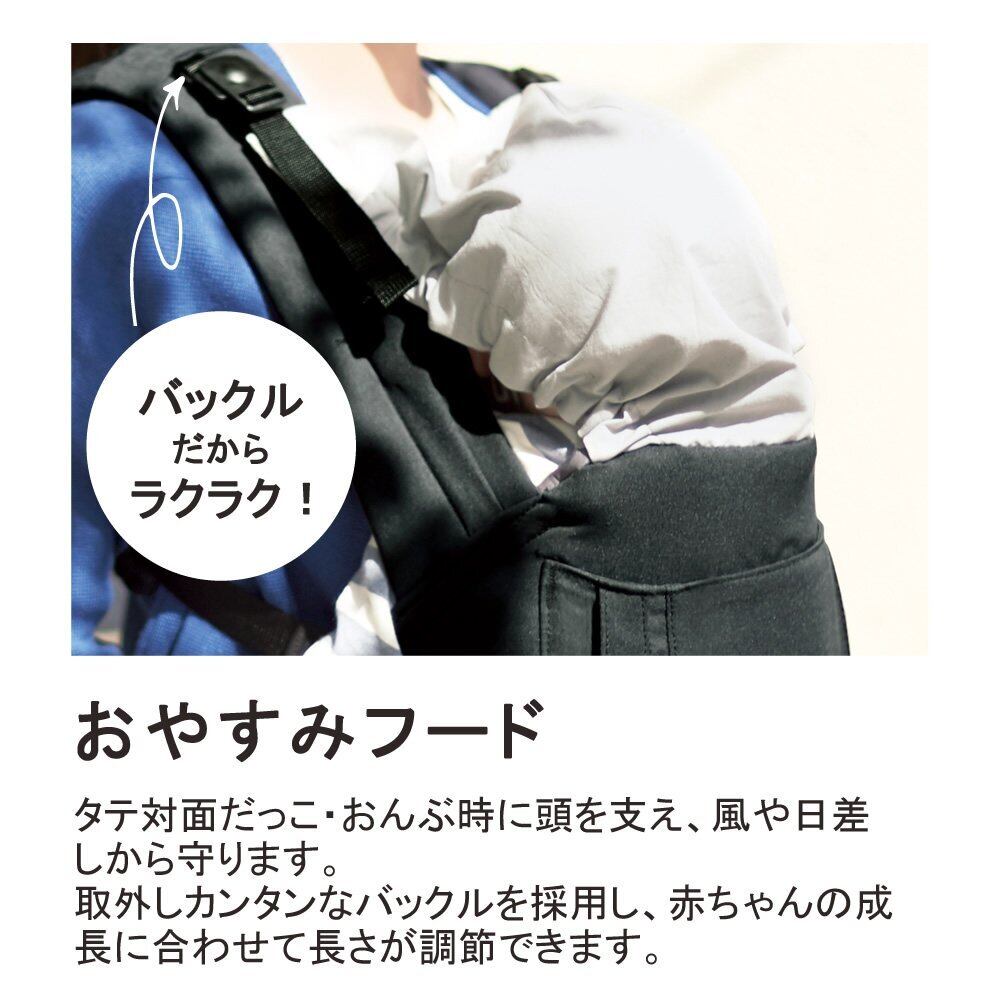 タテ対面だっこ・おんぶ時に赤ちゃんが寝てしまった際、頭を支えることができます。