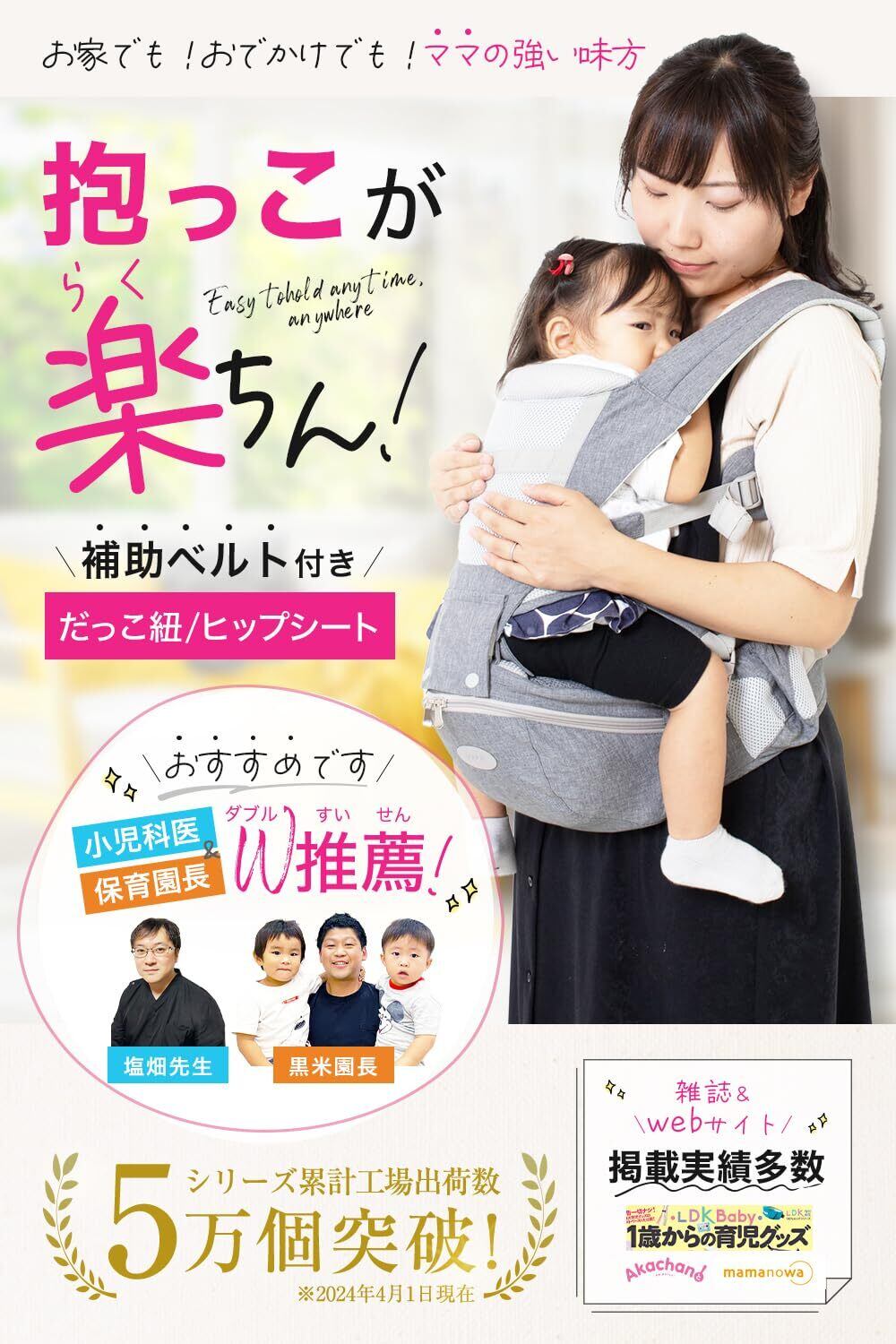 【特徴】本メーカー製品をご購入いただく皆さまの抱っこライフに少しでもお役に立て出来るようイメージ、デザインさせていただきました。 ①優しさパッド付き補助ベルト*パッド付補助ベルトは当ブランドだけ! ②U字型滑り止め付きシート 【簡単・便利な子育てグッズ】軽量モデルで持ち運びも楽々、 取り外しも簡単で時間をかけず手軽に使えるベビーキャリアです。抱っこにお困りのママやパパ達もしっかりサポートします。 シートのフロント、サイド部分には収納ポケットを充実させ利便性だけでなく機能性も兼ね備えました。 上部キャリア部分は簡単に取り外せ、「抱っこひも」「ヒップシート」とお使い分け出来ますので、家の中やちょっとそこまでの外出から旅行やショッピング、交通移動、送り迎えなど様々なシーンで活躍いたします。お手頃価格なのでキャリアタイプのセカンド用としても大人気のモデルです。※現在ご覧の選択商品は「カバー無し」となります。違うシリーズのパーツ追加や変更はできませんのでご注意ください。