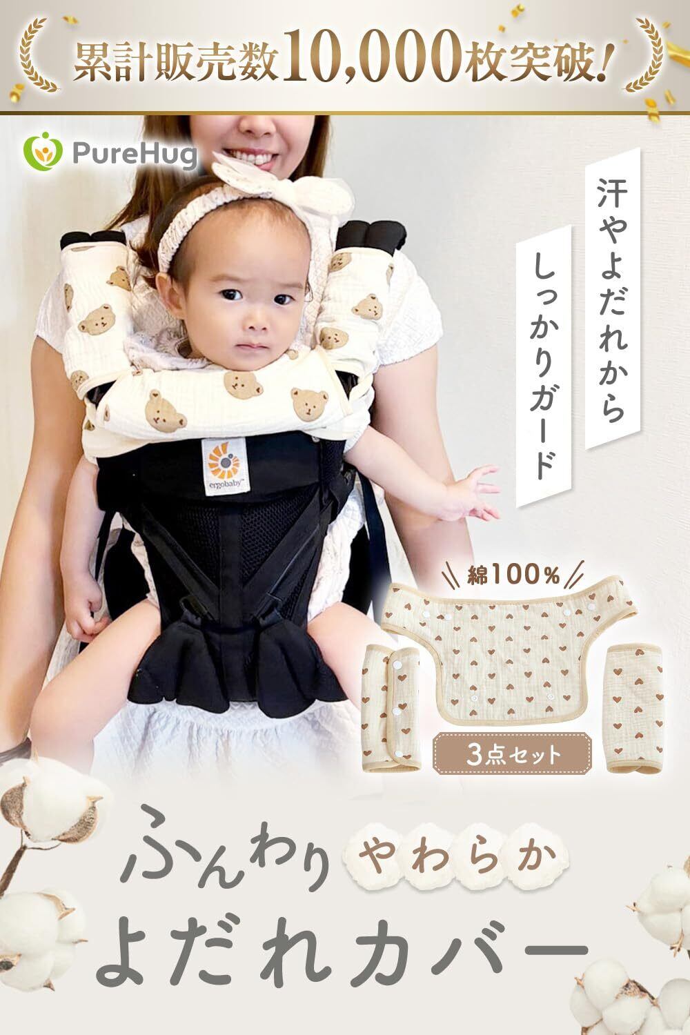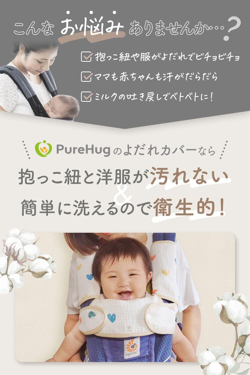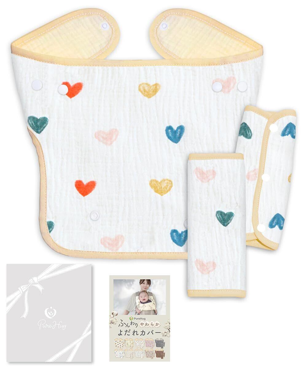 【特価商品】PureHug 【保育士推奨】 抱っこ紐 よだれカバー 抱っこ紐カバー よだれパッド 抱っこひも 胸当て付き 3点セット 綿100% チャイルドシート ベビーカー (カラフルハート)