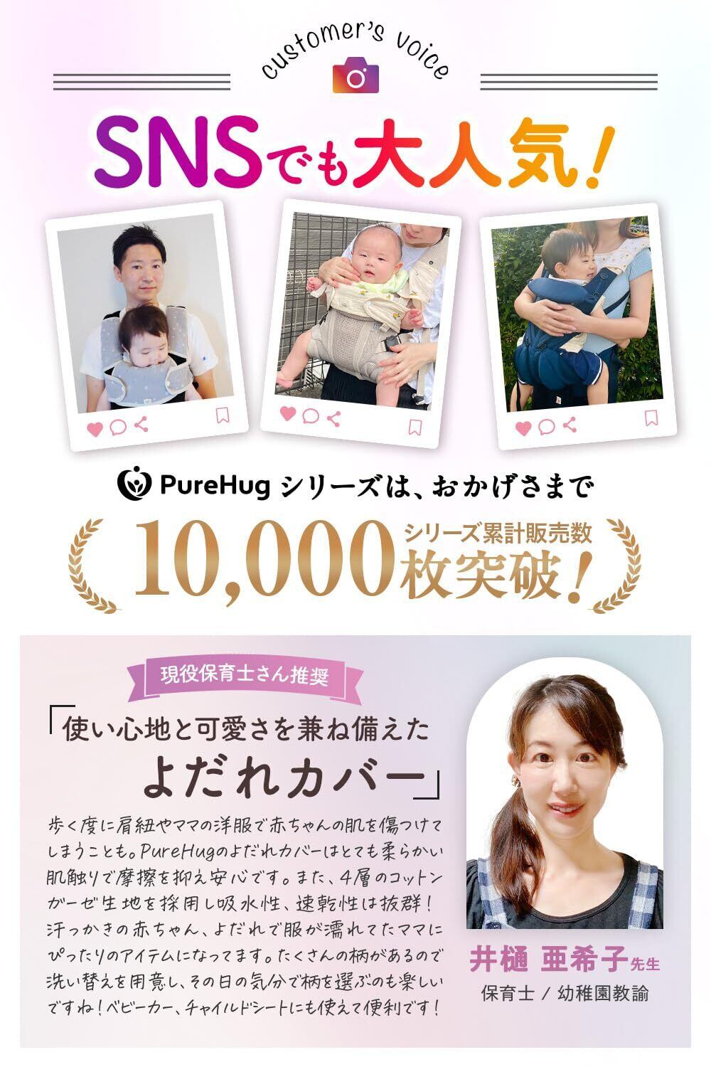 【吸水性・通気性抜群】PureHugのよだれカバーは独自の4層コットンガーゼ生地。吸水性・通気性に優れており、よだれや汗をしっかり吸収します。
