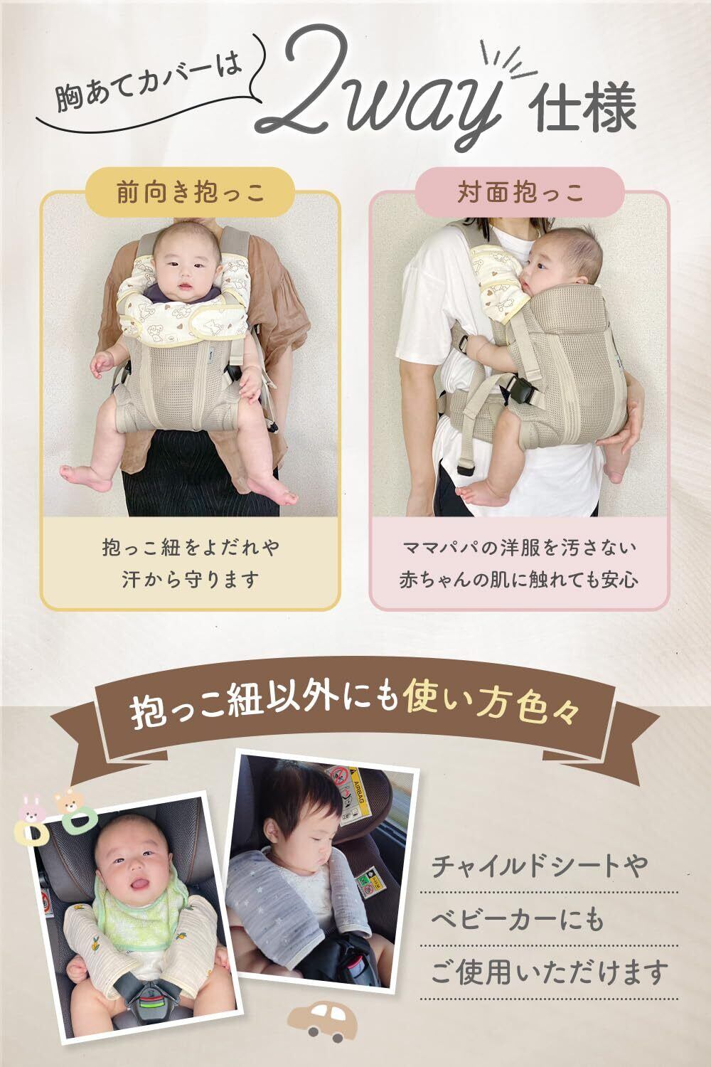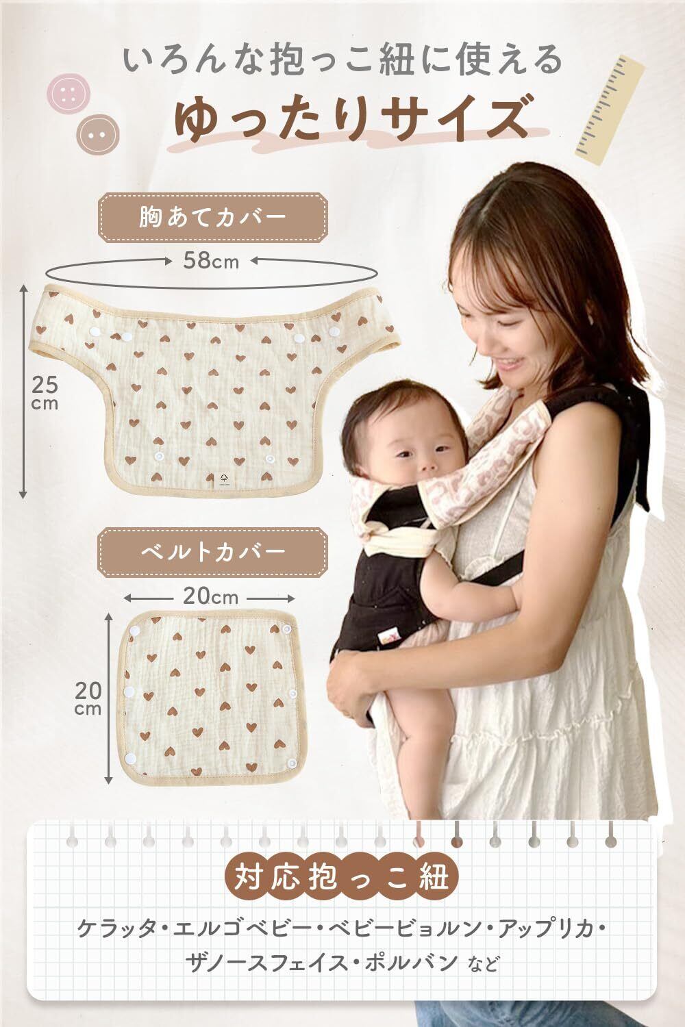 【どんな抱っこ紐も使える汎用サイズ】さまざまなメーカーの抱っこ紐にお使いいただけるように余裕を持ったサイズに設計しました。ボタンは大きめのスナップボタンを採用し簡単に着け外し可能です。抱っこ紐以外にもチャイルドシートやベビーカーにもご使用いただけます。