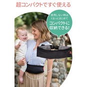 5.4キロから、18.1キロの乳幼児用キャリア、キャリア自体がウエストバッグの中に簡単にしまえて場所を取らない。人間工学に基づいたデザインで、乳幼児が自然に座れる。前向き抱き、対面抱きの二種類の抱き方が可能。遊園地、公園、飛行所など、お出かけに最適。