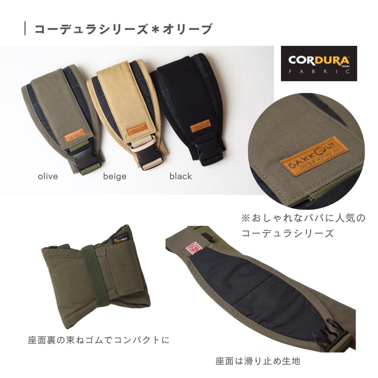 日本製 DAKKOLT(ダッコルト)ユニティ コーデュラオリーブ 正規品 超軽量160g 清潔 片手 セカンド抱っこ紐 簡単 誰でも 安心 抱っこベルト1歳〜4歳 軽量 コンパクト ヒップシート