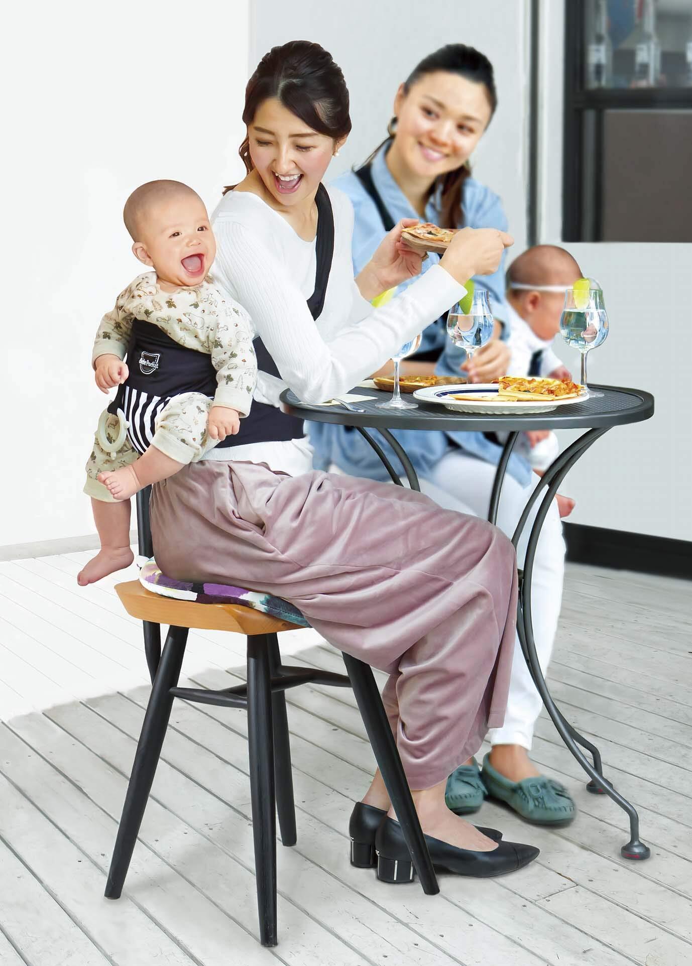 外食中のぐずりに効く!5WAYで使えるベビーキャリーです。