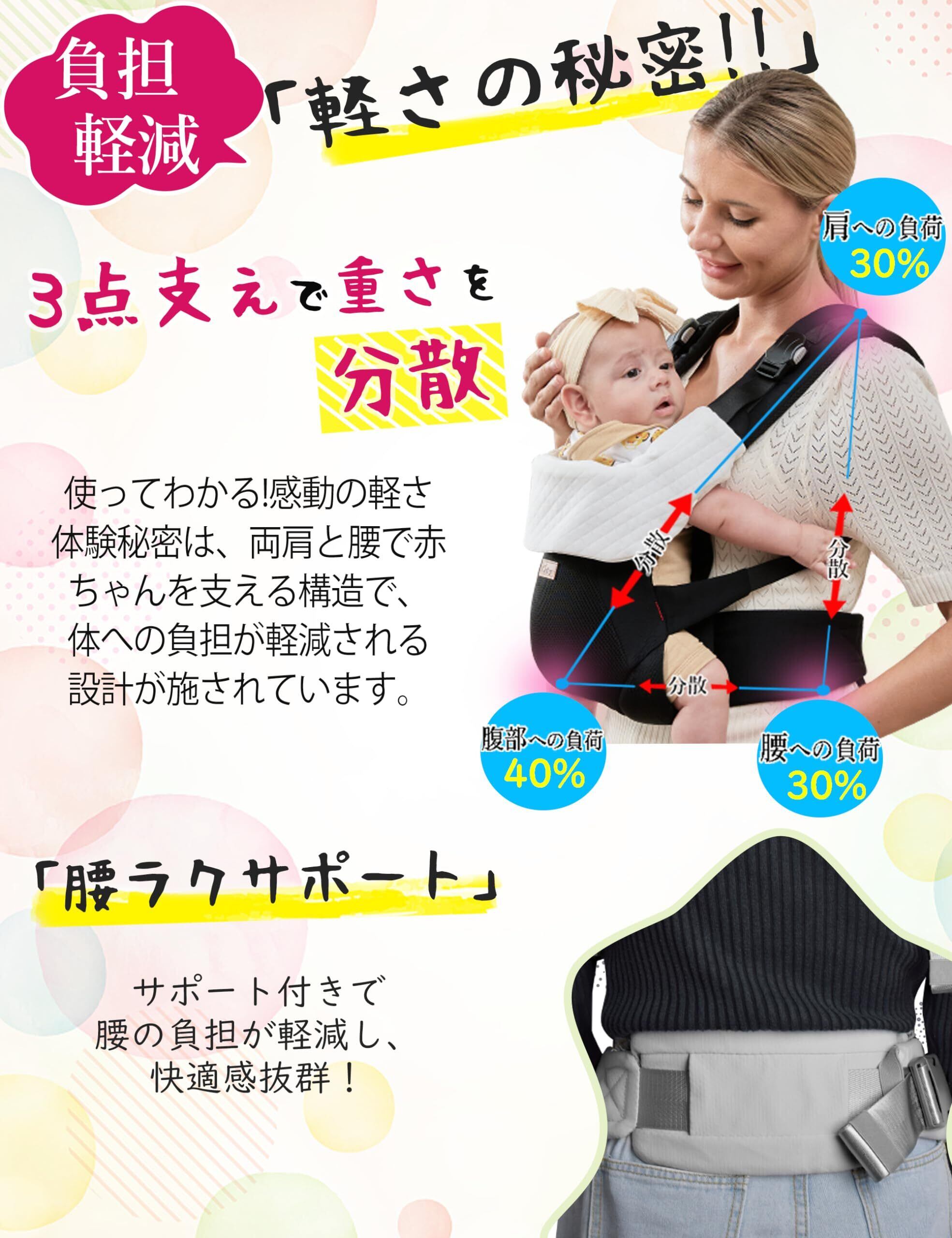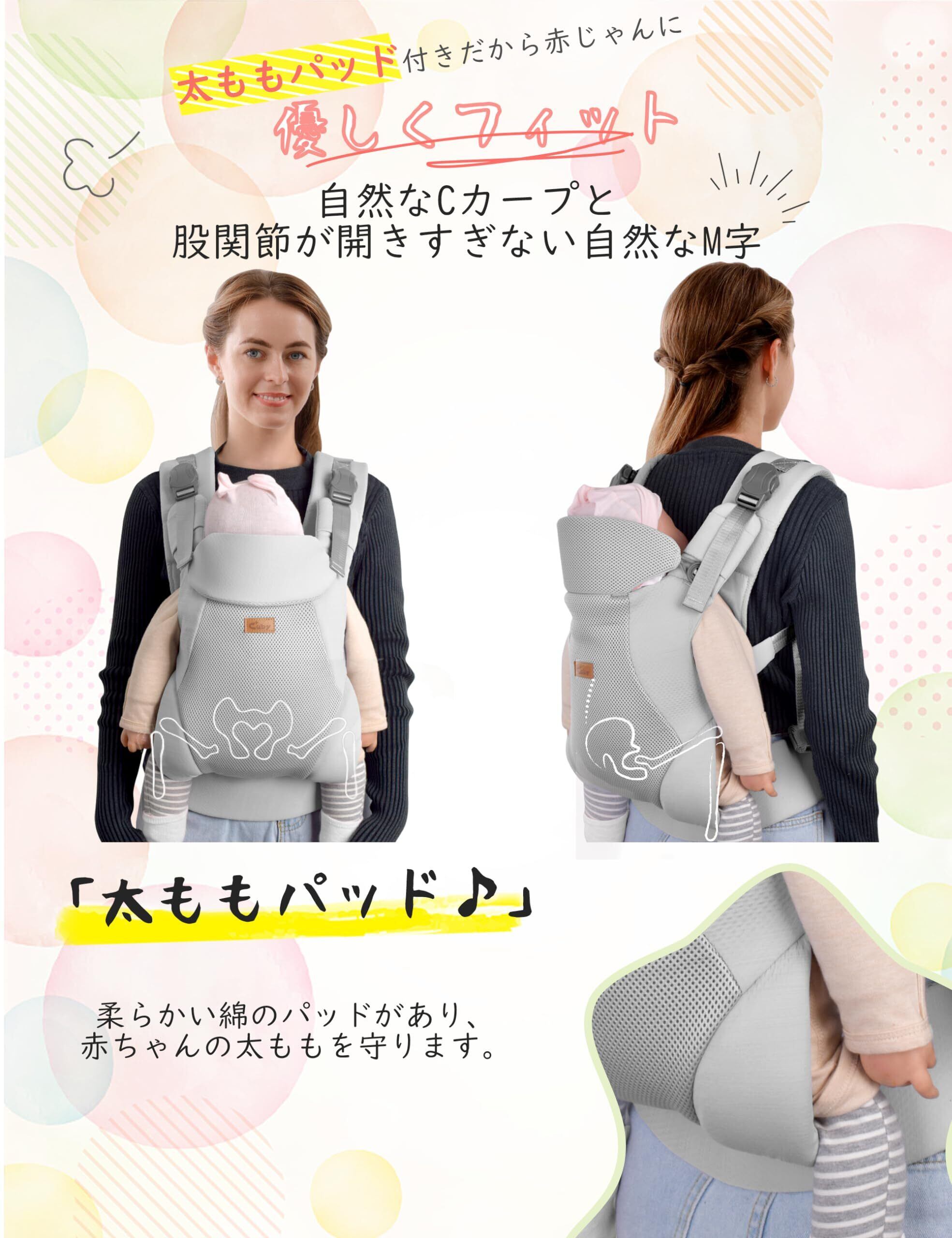 【快適設計】CUBY新生児だっこ紐は腰サポートがあるのでパパママの負担を軽減し、快適感抜群!折り畳み式ヘッドサポートが赤ちゃんの首を保護し、寝ている間に頭を後ろに倒す心配はありません。足の引っかき傷を防ぐ対策も取っております。この抱っこひもは上質な100%綿で作られており、赤ちゃんや親の肌に柔軟にフィットし、快適で通気、洗濯機で洗うこともできます。