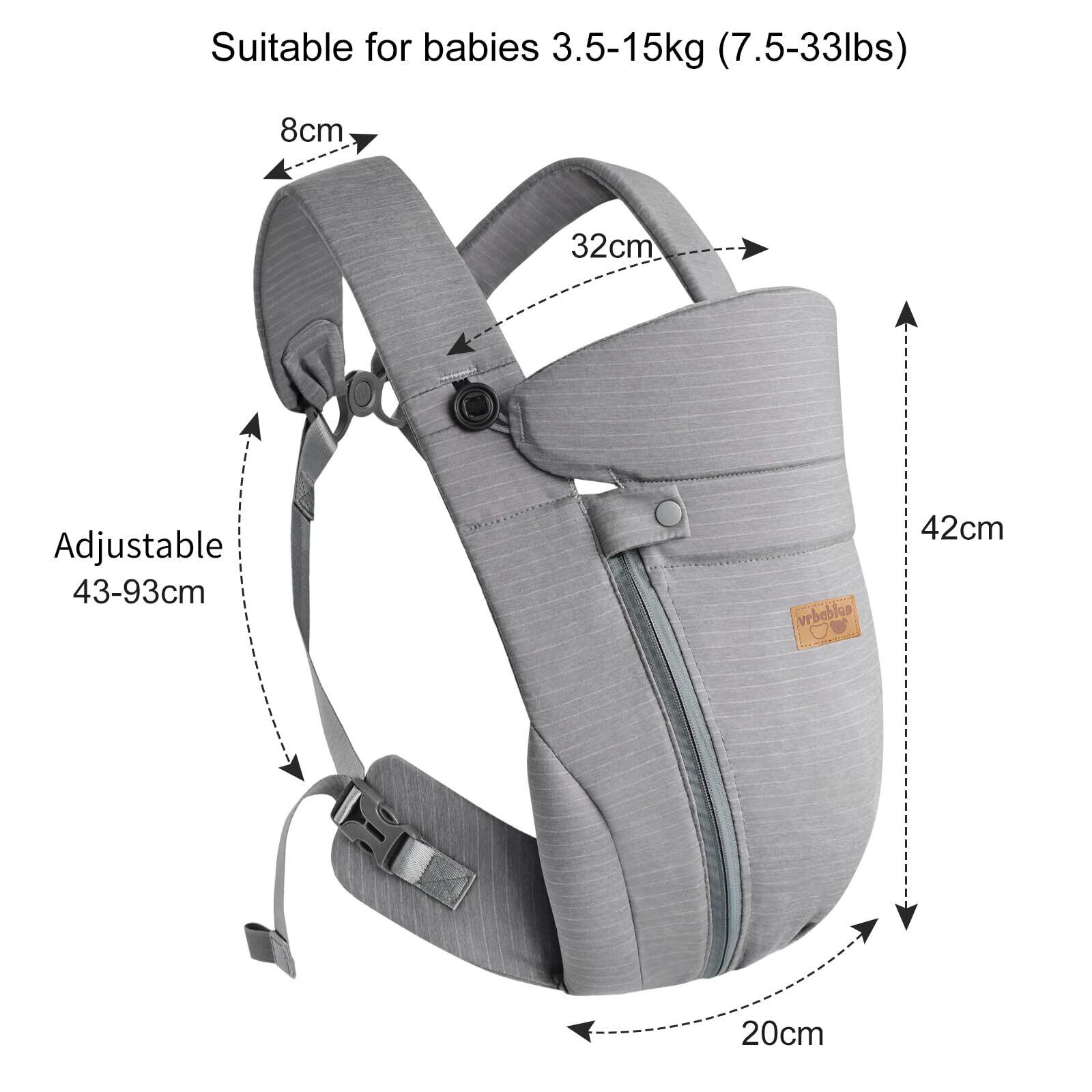 Vrbabies ベビー スリング 新生児 抱っこ紐 対面抱っこ 前向き抱 ベビーキャリア だっこひも おんぶ紐ママパパ兼用 腰サポート付き 軽量 通気性 出産祝い (ダークグレー)