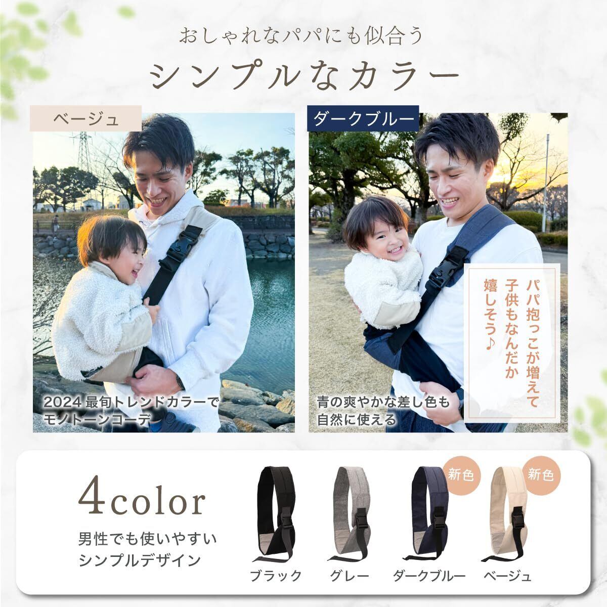 【シンプルデザイン・男女兼用】おしゃれを邪魔しないシンプルなデザインに加え、ベルト調節も可能なので体格差のあるパパママの兼用も可能です。
