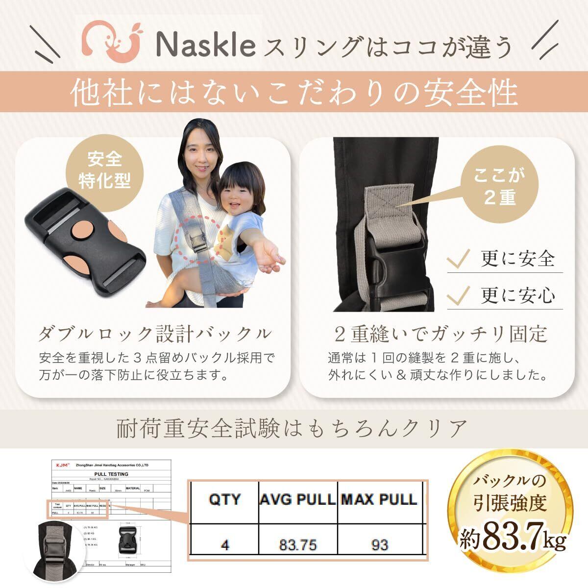 【特価セール】【保育士さん推奨x絶賛愛用中】Naskle(ナスクル) 抱っこ紐 ベビースリング【ダブルロック設計 耐荷重試験クリア】 楽ラク抱っこ ベルト コンパクト 軽量 男女兼用 収納袋付き(ダークブルー)