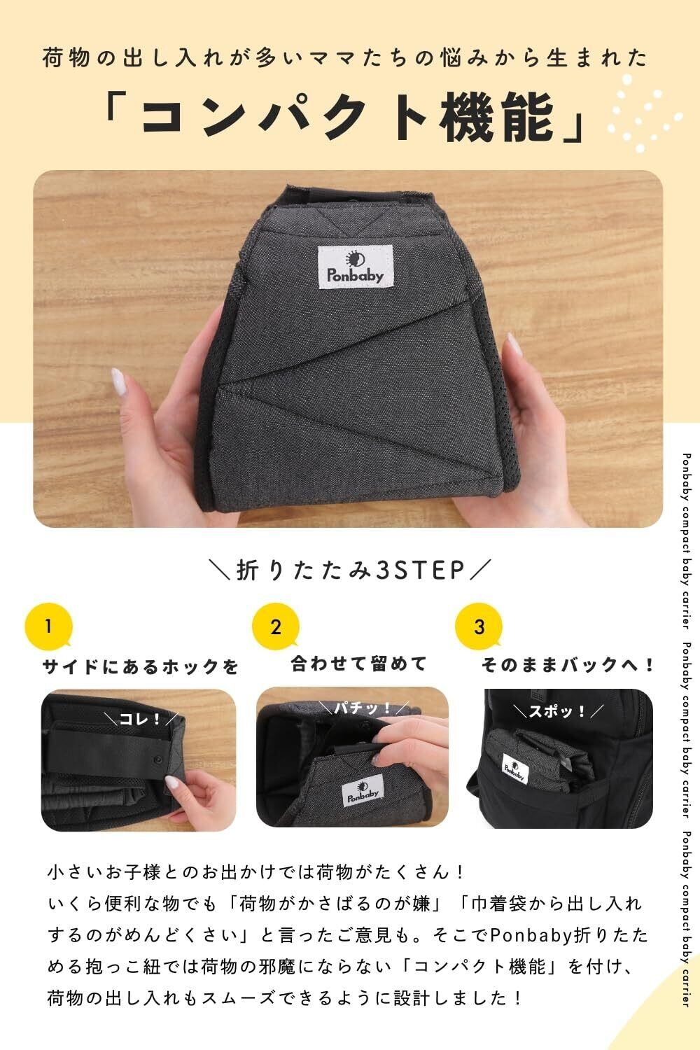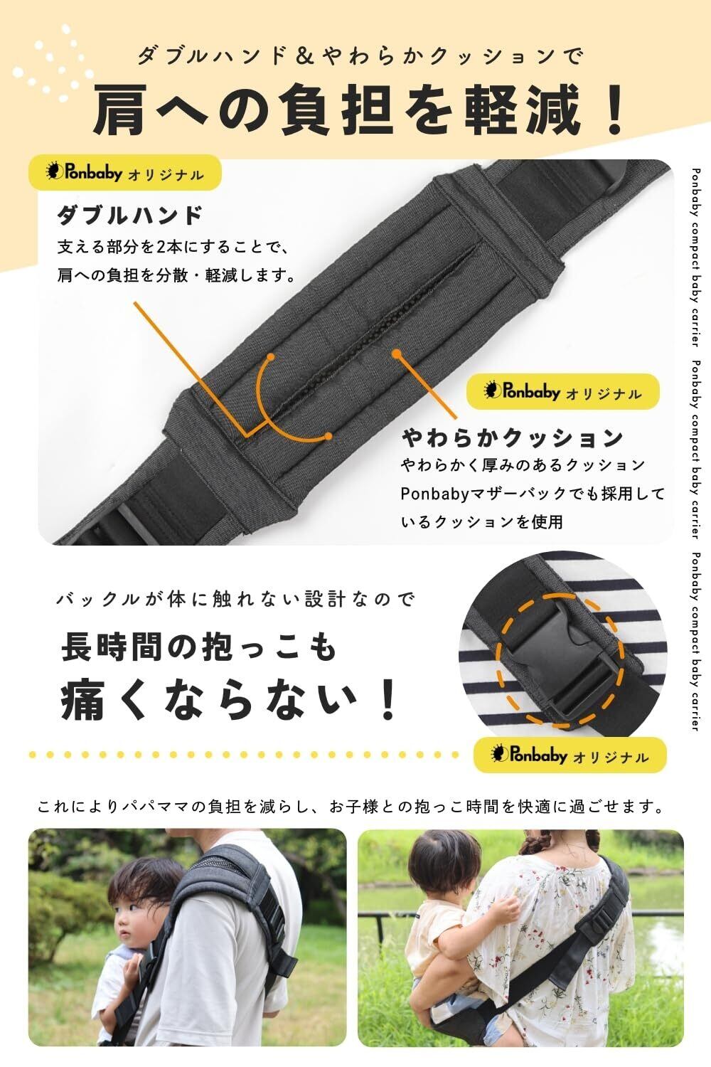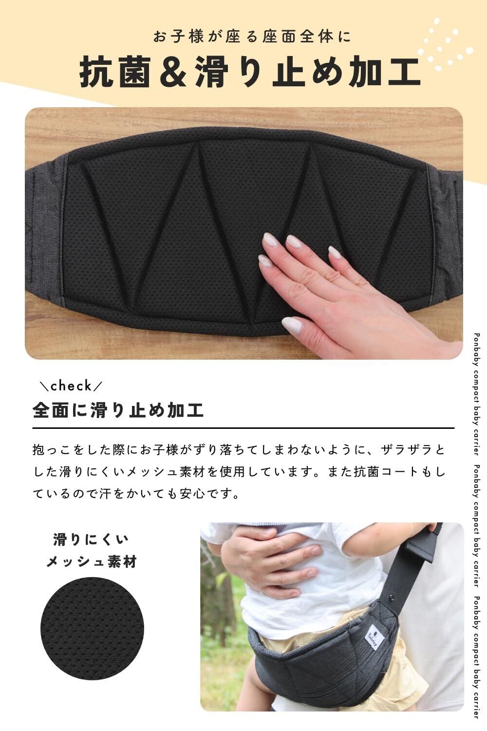 [Ponbaby] 【肩負担軽減 で 長時間】【コンパクト設計でかさばらない】 抱っこ紐 ベビースリング 【左右使える】 だっこひも スリング サイド ヒップシート 7~48ヵ月 バックルがあたらない 抱っこひも (グレー×ブラック)