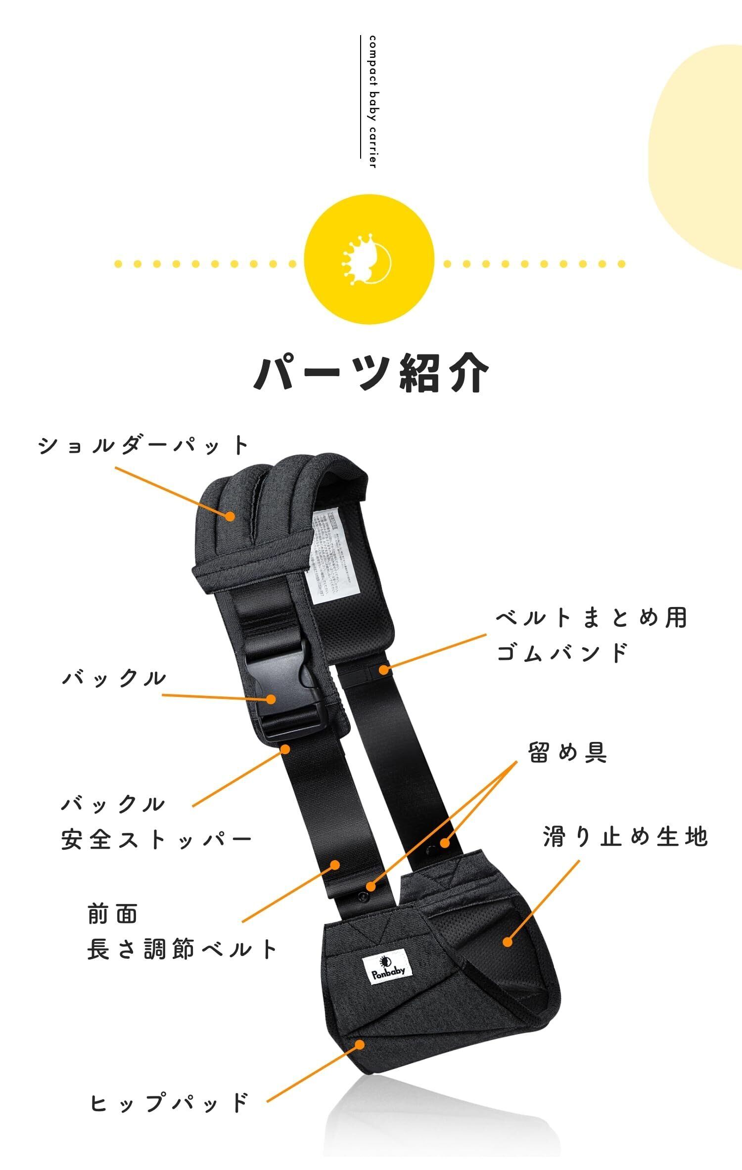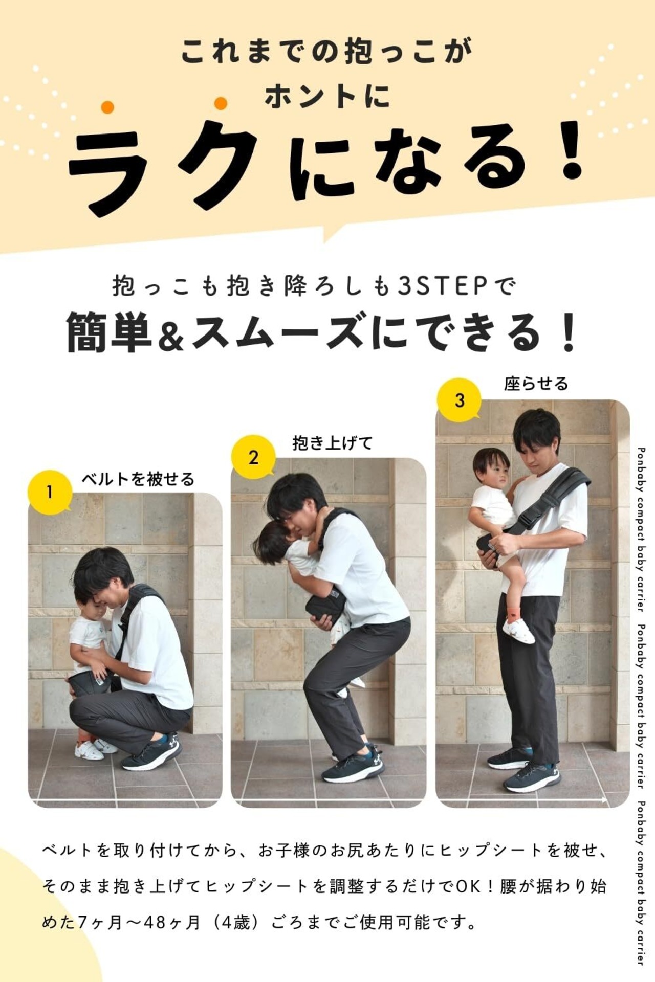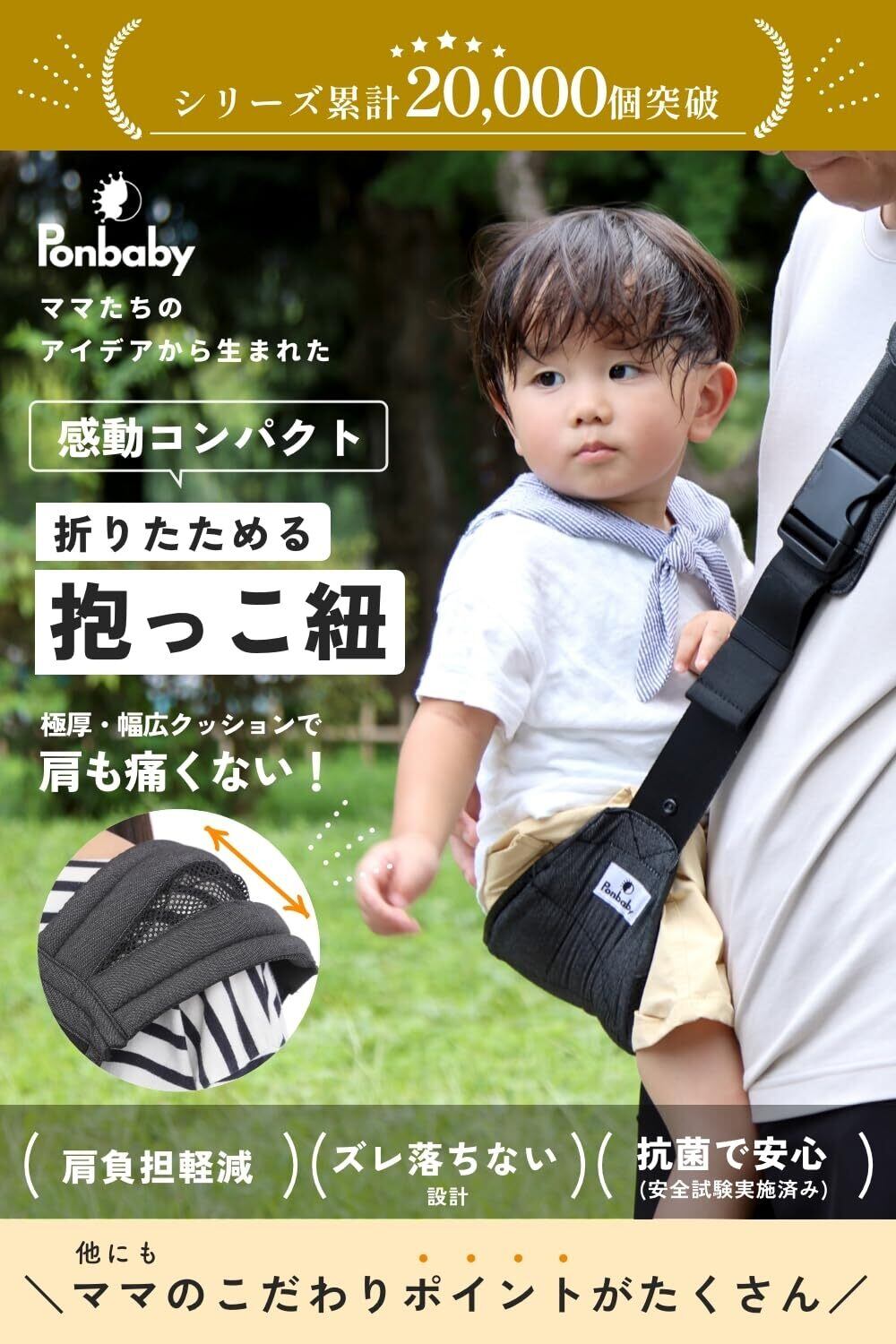 [Ponbaby] 【肩負担軽減 で 長時間】【コンパクト設計でかさばらない】 抱っこ紐 ベビースリング 【左右使える】 だっこひも スリング サイド ヒップシート 7~48ヵ月 バックルがあたらない 抱っこひも (グレー×ブラック)