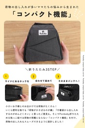 【感動コンパクト】荷物の出し入れが多いママたちの悩みから生まれた「コンパクト機能」。サイドにあるホックを合わせて留めてそのままバックへ!小さいお子様とのお出かけでは荷物がたくさん!いくら便利な物でも「荷物がかさばるのが嫌」「巾着袋から出し入れするのがめんどくさい」と言ったご意見も。そこでPonbaby折りたためる抱っこ紐では荷物の邪魔にならない「コンパクト機能」を付け、荷物の出し入れもスムーズできるように設計しました!