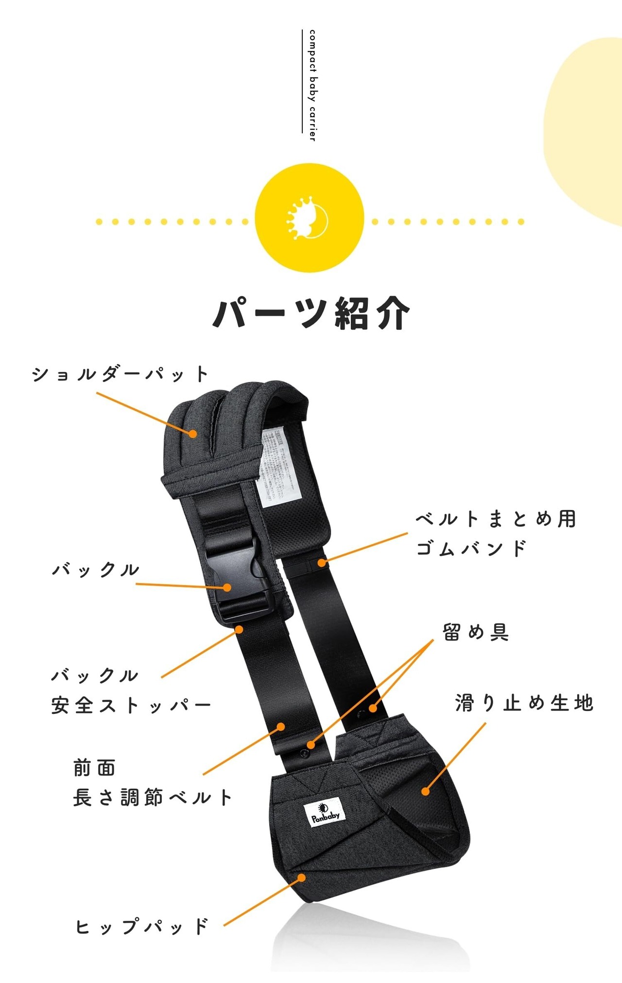 【バックルが身体に触れない設計】バックルが体に触れない設計なので長時間の抱っこも痛くならない!肩や腰など体にバックルがたってしまうと、痛みが発生してきてしまいます。そこでバックル部分のクッションを大きくし、体に触れないように設計しました。これによりパパママの負担を減らし、お子様との抱っこ時間を快適に過ごせます。