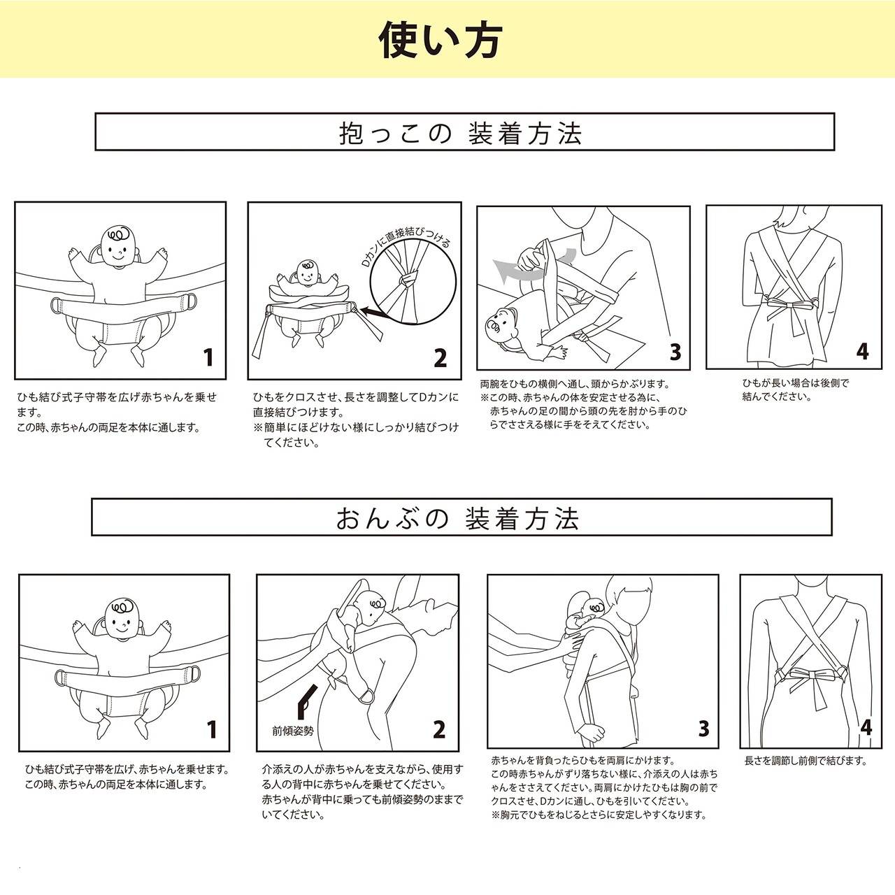 【おんぶ・だっこ兼用紐結び式子守り帯】おんぶ紐・抱っこ紐の両方として使用できる便利な商品です。