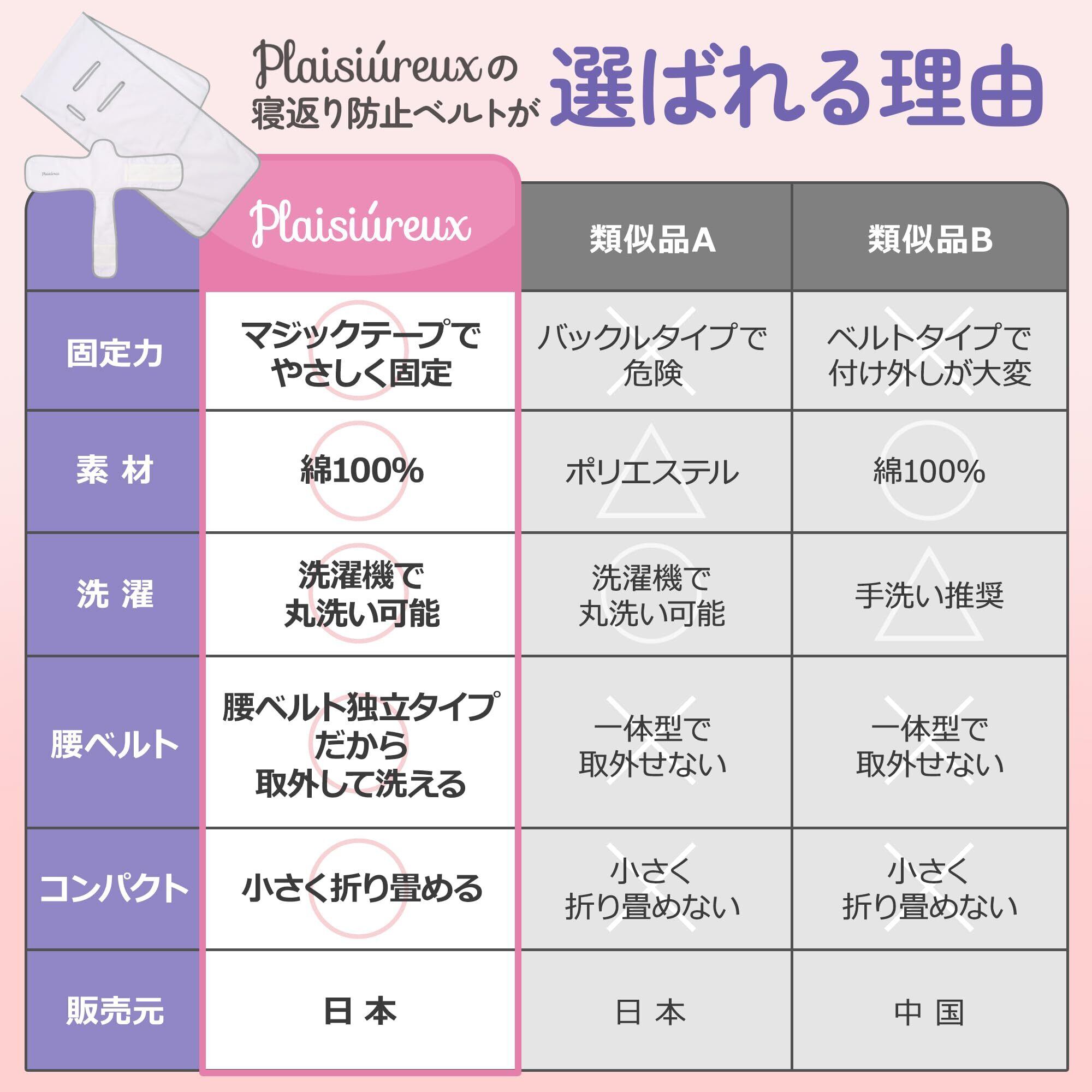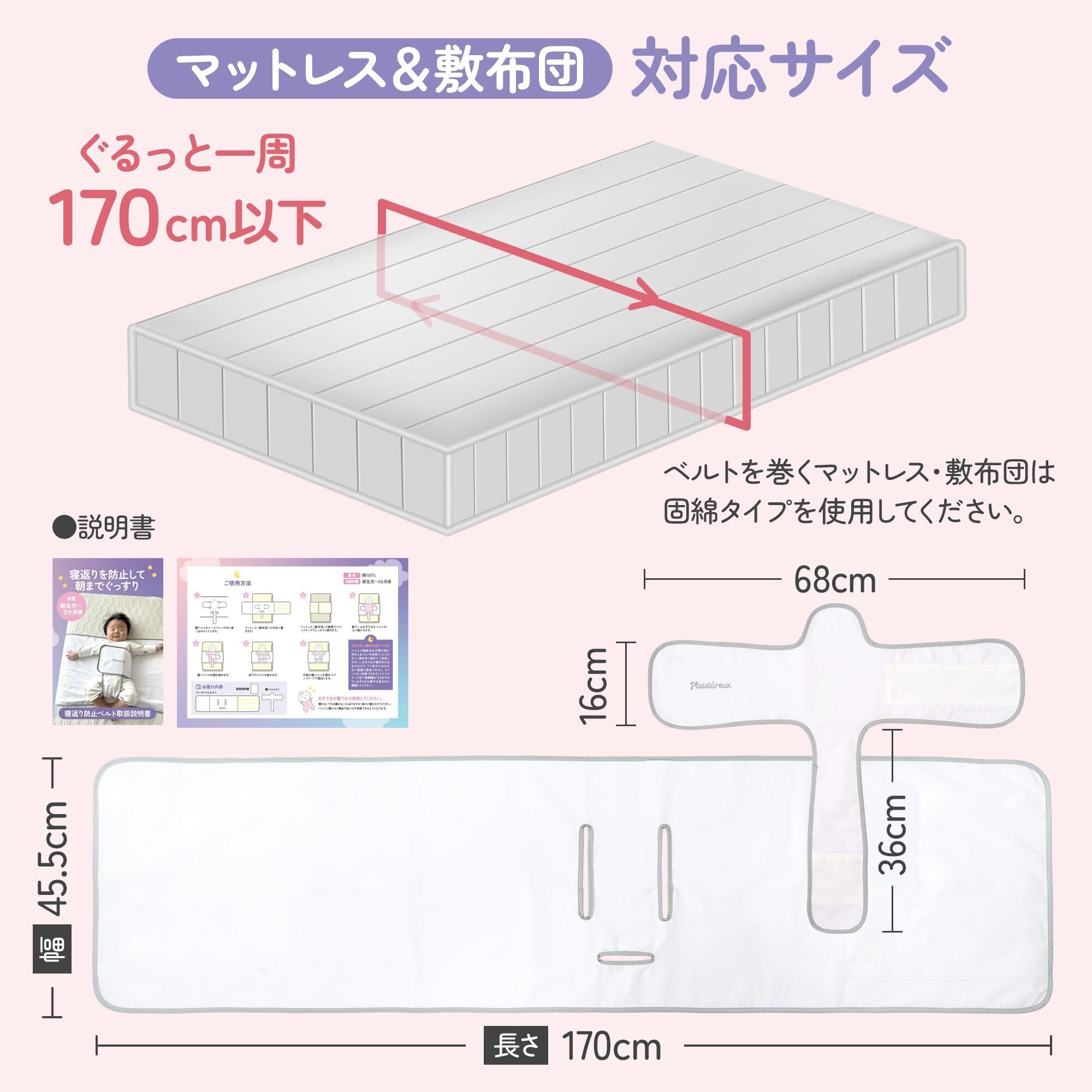 【商品仕様】○対応サイズ:マットレスや布団の円周が170cm以下 ○対応:ベビー布団・ベビーベッド両方対応 ○素材:綿100%(伸縮性のないしっかりとした生地) ○対象年齢:新生児~9ヶ月頃(お子様が自分でベルトを外し始めたら、年齢に関係なく使用をやめてください) ○ブランド:Plaisiureux(プレジュール)