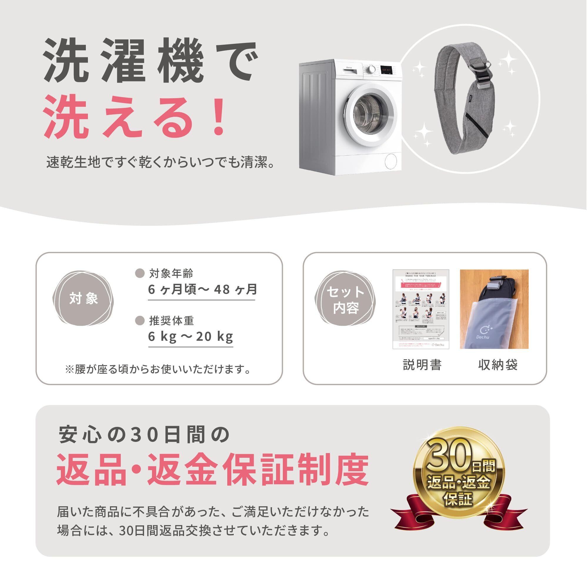【Dechu(デチュ) 国内試験機関の耐荷重試験クリア】 ベビースリング ヒップシート 片手 抱っこ紐 保育士さん推奨 ポケット付き (オールブラック)