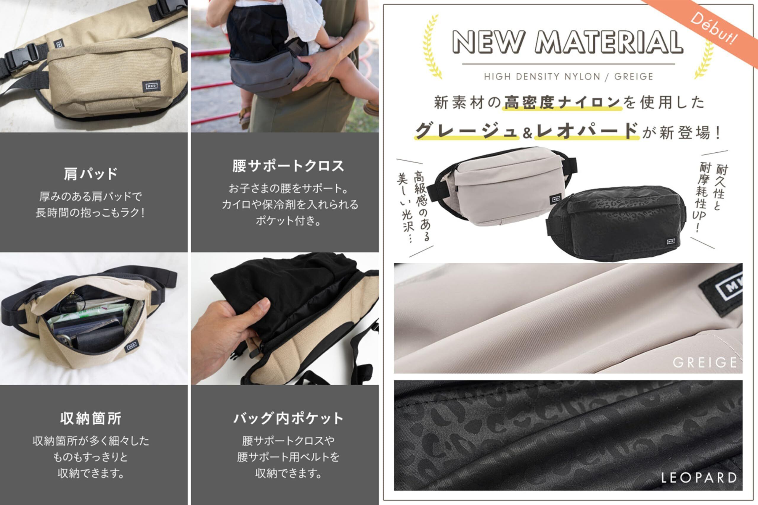 【特価商品】【ショルダーベルト+ウエストベルト】 2点で支えることで負担軽減 ヒップシート ショルダーバッグ 2WAY仕様 耐荷重20kg 大容量収納 コンパクト 滑り止め付 二重バックル キッズ用サポートベルト&クロス付き 保育士監修品 出産祝い [MKD.] (レオブラック)