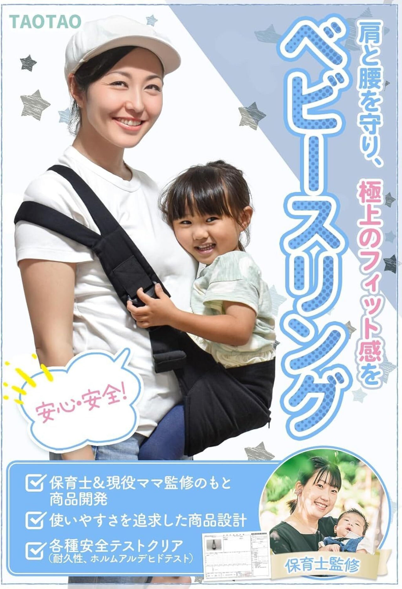 【保育士×現役ママ監修】TAOTAO ベビースリング スリング 抱っこひも 収納袋付き 【国内検品×国内検査機関耐荷重試験済】 (ブラック)