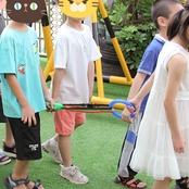 ハンドル付き歩行用ロープ 各ハンドルは、子供たちの間のスペースが十分に広く、子供の足が簡単に踏まないように配置されています。