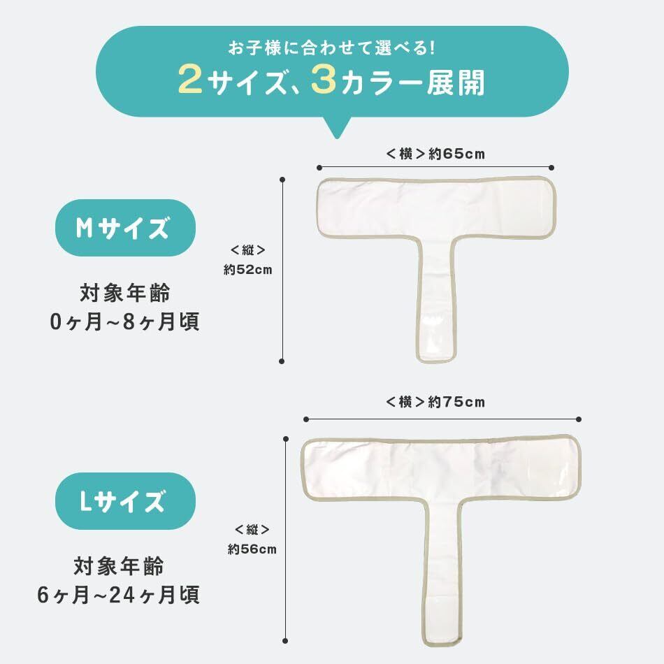 【製品仕様】●サイズ:<M>ベルト:縦 520mm × 横 650mm <L>ベルト:縦 560mm × 横 750mm ●カラー:ホワイト / イエロー ●素材:本体 ポリエステル 100%、バイアス ポリエステル 100%、面ファスナー ナイロン、バックル POM ●対象年齢:<M>0ヶ月~8ヶ月頃、<L>:6ヶ月~24ヶ月頃