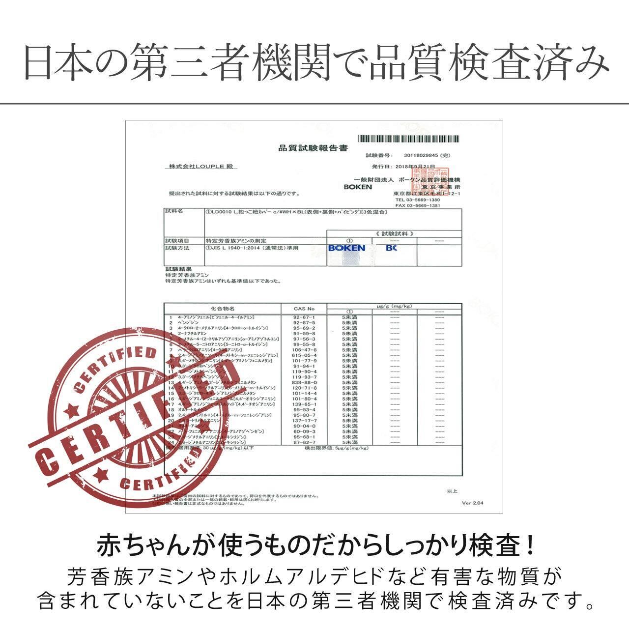 【6重ガーゼ生地の安全素材️】表・裏 綿100%の6重ガーゼ素材です。ガーゼ素材は敏感肌の赤ちゃんに最適な素材の一つで、赤ちゃんの柔らかい肌をしっかりと守ってくれます。6重構造になっているため、程よい厚みがあり、吸水性も優れています。肌触りも柔らかくい使用感で毛玉になりにくいです。洗濯の際にゴミも付きにくいので、忙しいママの仕事を増やしません。【日本の第三者機関で安全性チェック️】大切な赤ちゃんに使用するものですので、万一芳香族アミンやホルムアルデヒドなど有害な物質が含まれていたら大変です!有害物質が含まれていないことを日本の第三者機関で検査しております。