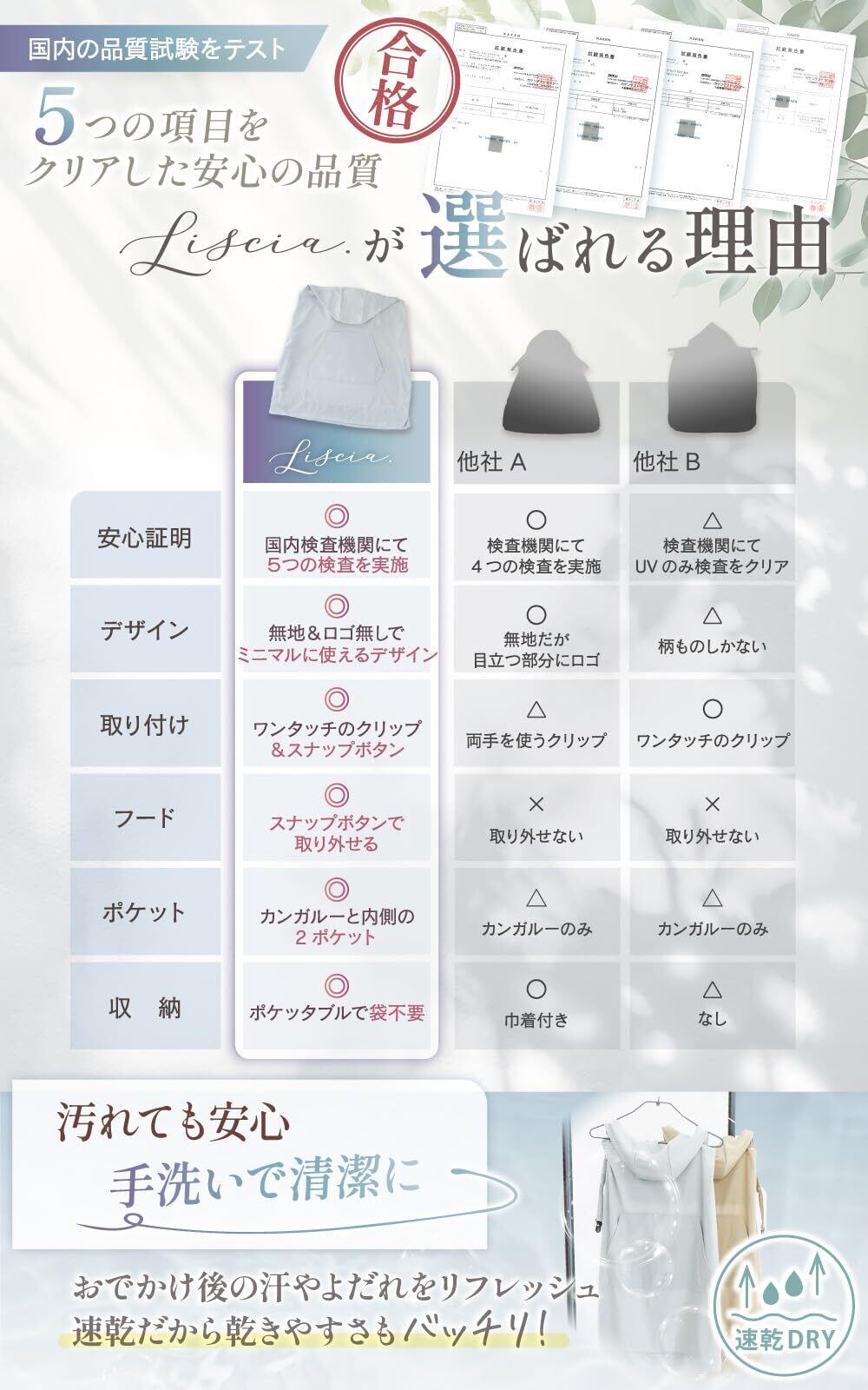 【収納力を上げるカンガルーポケット】前面にはカンガルーポケットを搭載しており、小物の収納に便利。外出時に必要なアイテムを手軽に収納でき、使いたい時にすぐ取り出せます。【たった10秒 簡単取り付け】ケープは、簡単に取り付けができる設計。わずか10秒で取り付けが完了し、外出先でもすぐに使用可能です。面倒な手間を省き、忙しいママにもぴったり。