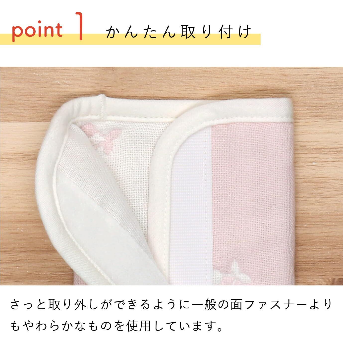 よだれをしっかり吸収し、リバーシブルで使える便利な抱っこひもカバーです。 一般の面ファスナーよりもやわらかいものを使用し、取り付けも簡単です。 抱っこひもだけでなく、ベビーカー・カーシートなどのベルトカバーにもお使いいただけます。