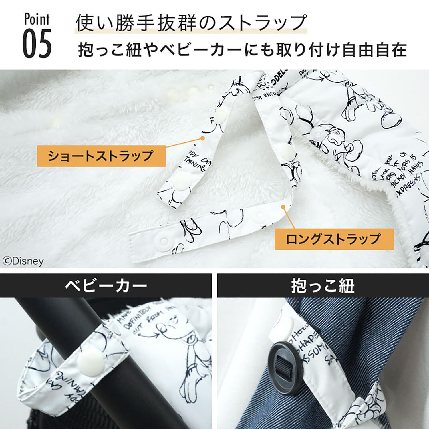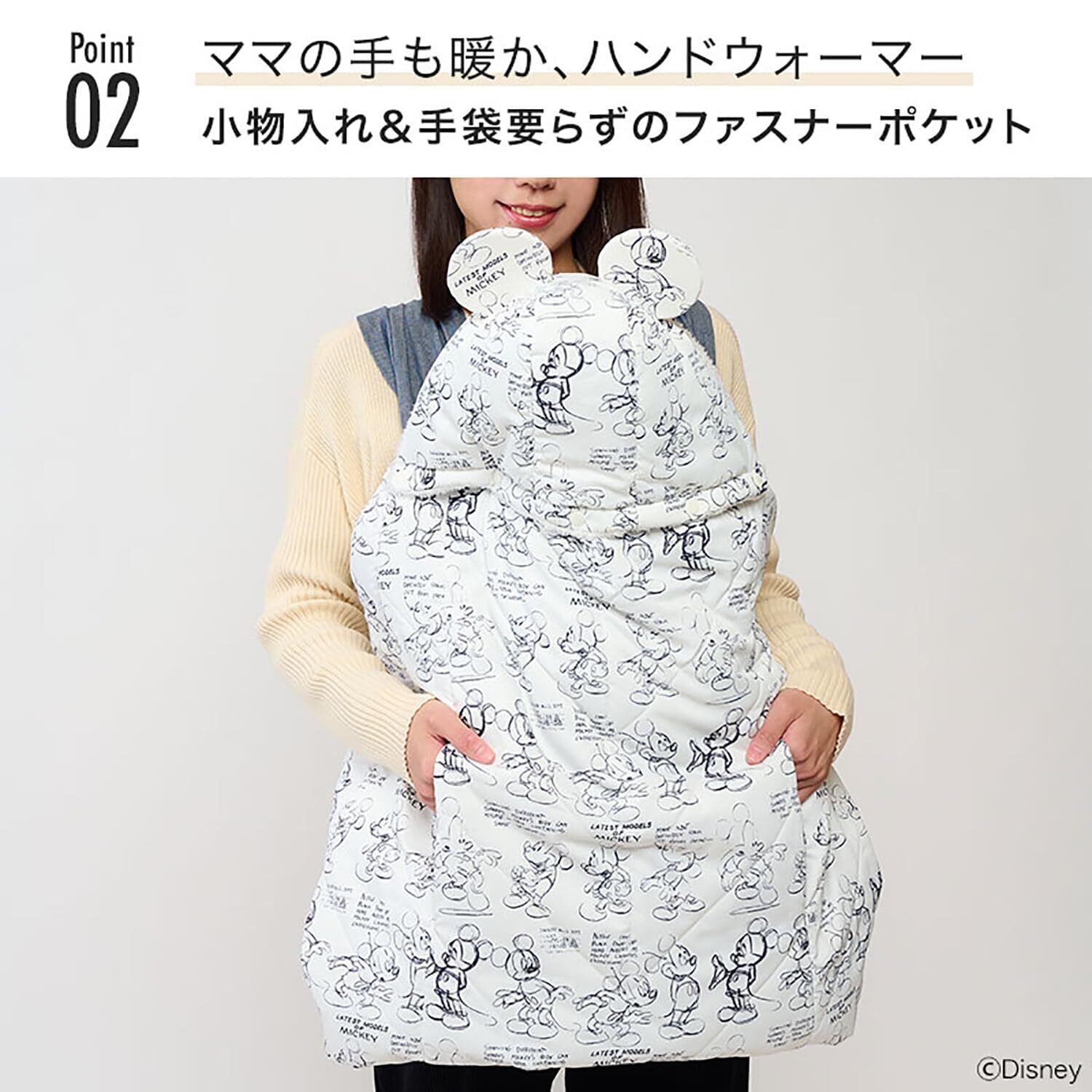 抱っこ紐 防寒ケープ ディズニー ミッキー ベビーカー おんぶ対応 撥水加工 防寒カバー リバーシブル ホワイト