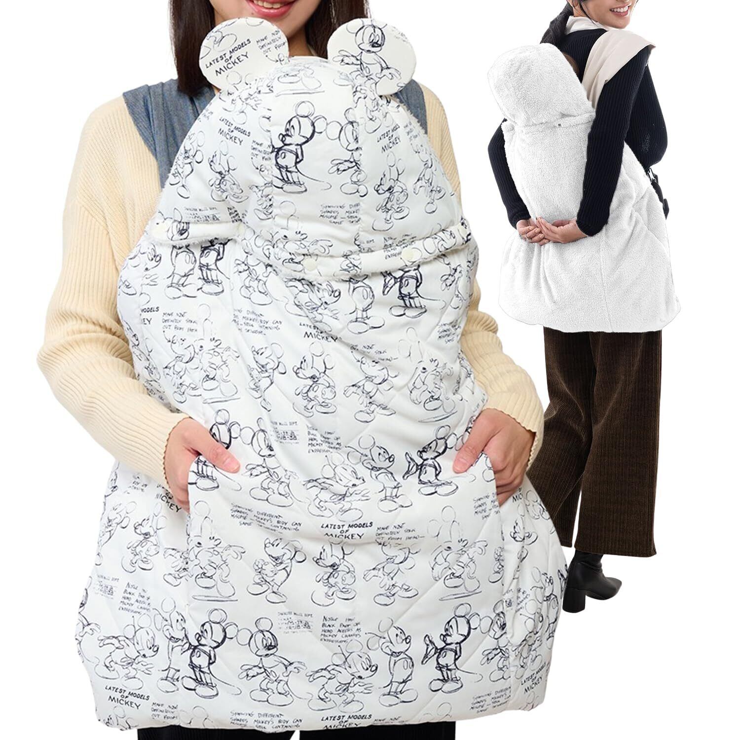 【特価商品】抱っこ紐 防寒ケープ ディズニー ミッキー ベビーカー おんぶ対応 撥水加工 防寒カバー リバーシブル ホワイト