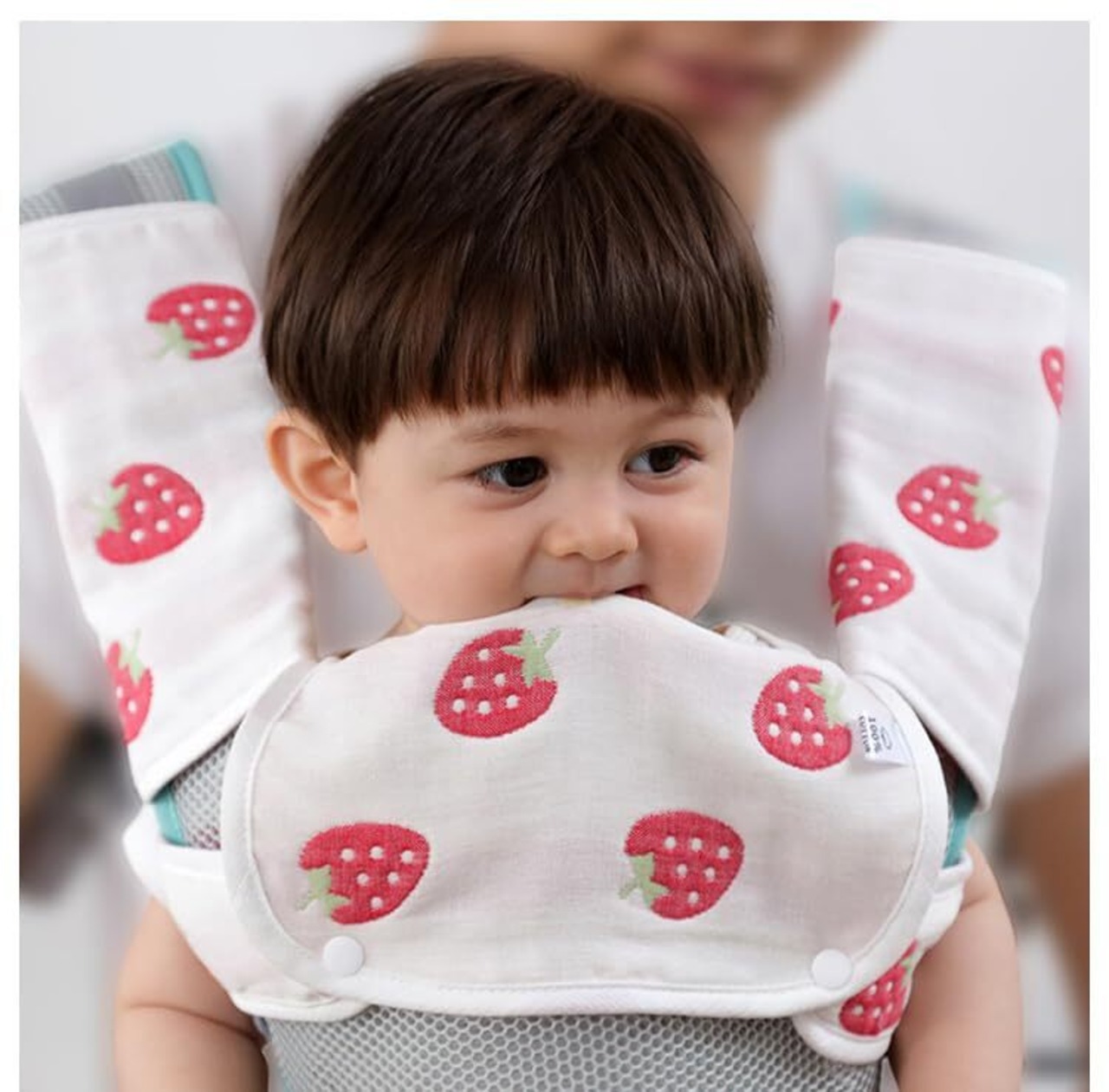 素材の安全性: 綿の6重ガーゼ素材は、肌に優しく、赤ちゃんのデリケートな肌を抱っこ紐や洋服からの摩擦から守り、敏感な肌の赤ちゃんにも適しています。さらに、無蛍光生地なので、子供が舐めても安心です。