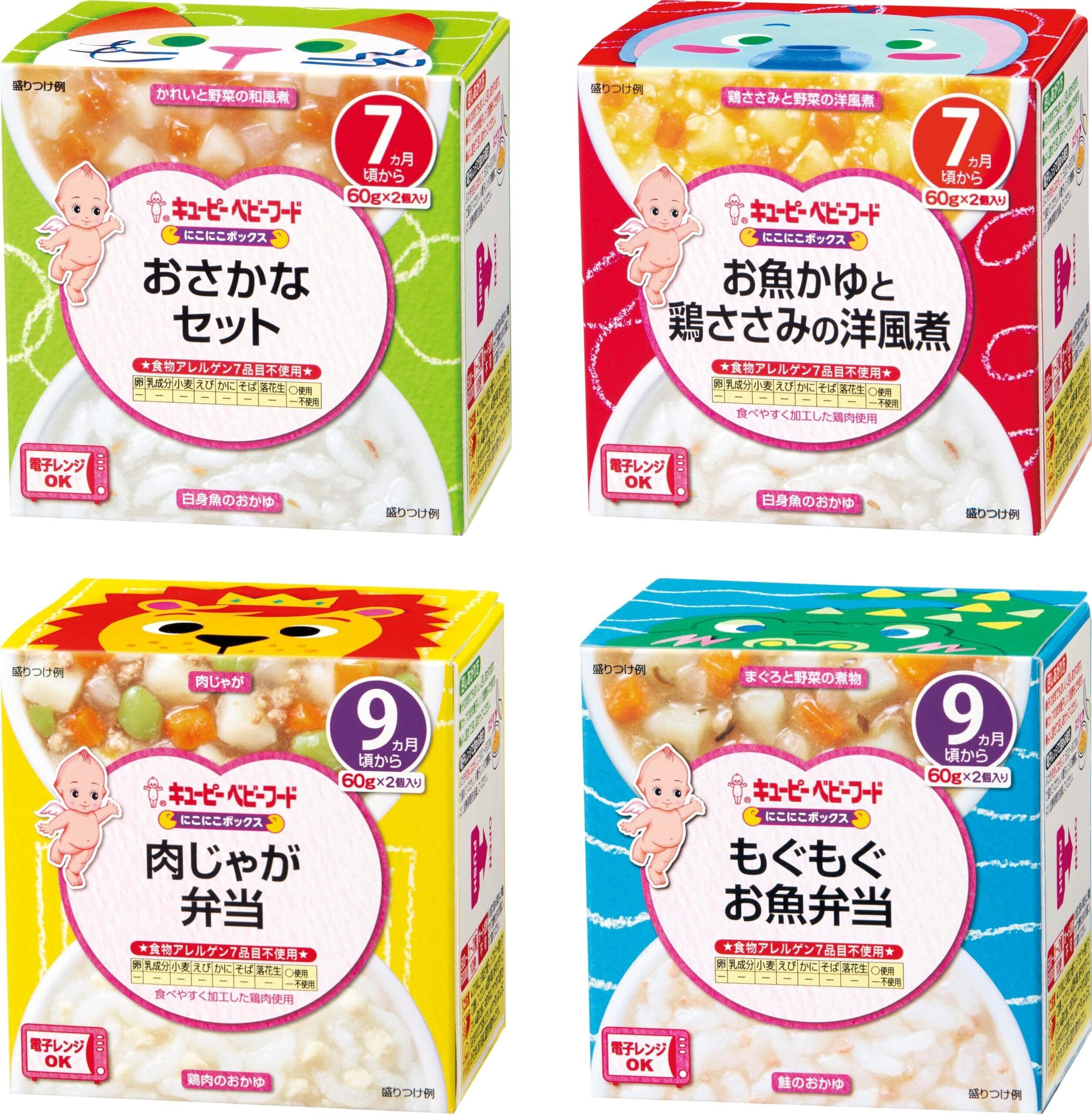 キユーピー ベビーフード にこにこボックス4種セット 7ヵ月頃から&9ヵ月頃から (おさかなセット、お魚かゆと鶏ささみの洋風煮、もぐもぐお魚弁当、肉じゃが弁当) アソート 離乳食