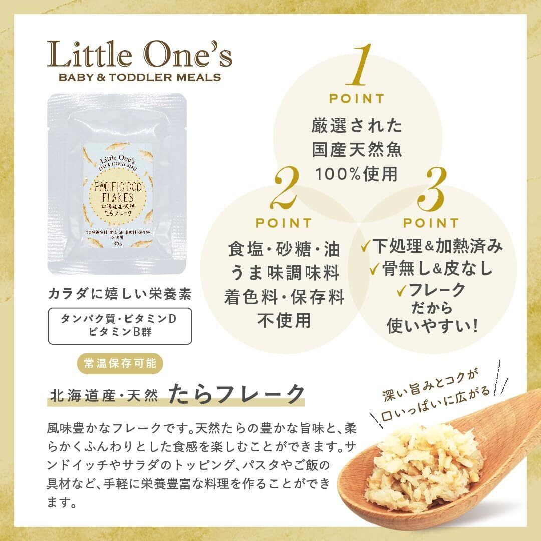 リトルワンズ 無添加 離乳食 「 北海道産 天然たらフレーク 」 7ヶ月頃から 30g×2袋 食塩不使用 国産 ベビーフード 魚フレーク 白身魚 時短 簡単
