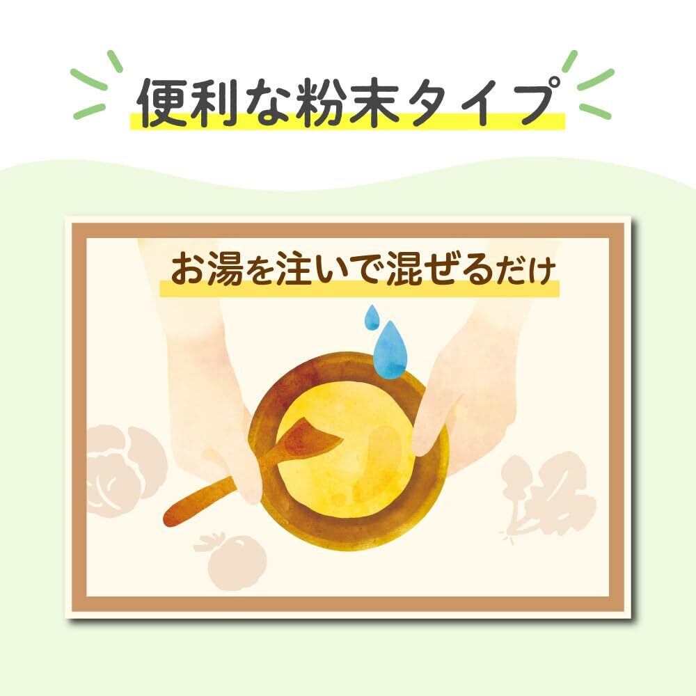 お湯に注いで、混ぜるだけ。パスタ、おいも、おかゆなどにかけて手軽に使える、トマトソースです。 <かんたん粉末+鉄の特徴> ●鶏ひき肉と2種類の野菜が入った、まろやかな味付けのトマトソースです。 ●1回分で鶏レバー11g分の鉄分1.0mg配合。 (*日本食品標準成分表(2020年)にわとり・肝臓・生の値) ●さっと溶ける粉末タイプ ●保存や外出に便利な使い切り個包装 ●内容量:26.4g(4.4g×6袋)