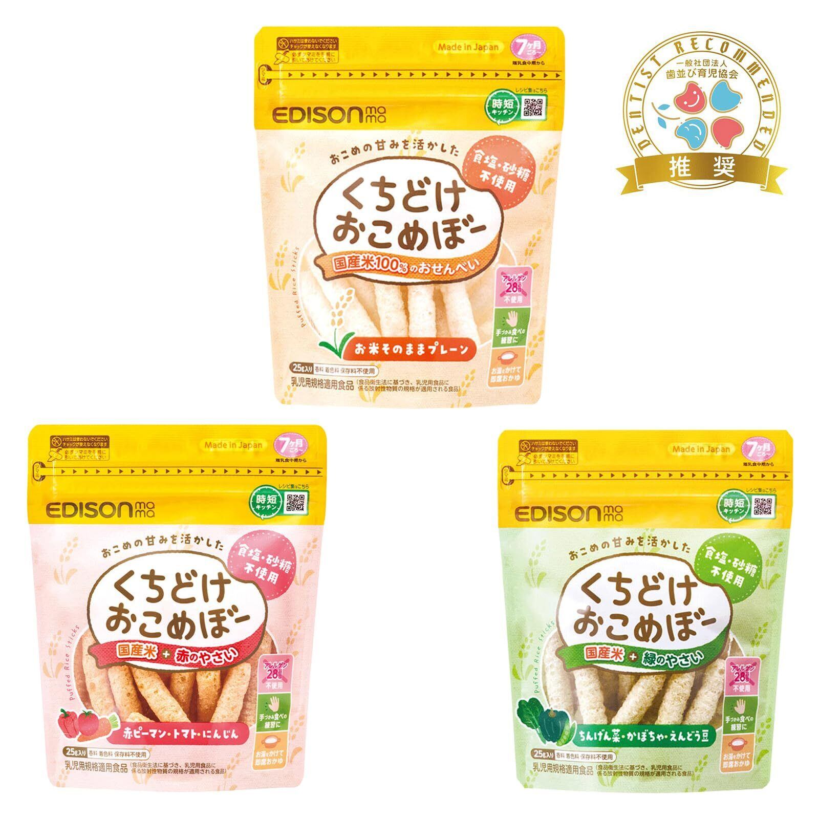【新着商品】EDISONmama(エジソンママ) くちどけおこめぼー プレーン 25g 5個セット 7ヶ月~ / ベビーフード 手づかみ おせんべい お湯でおかゆにも 無添加・アレルゲン28品目不使用 限定
