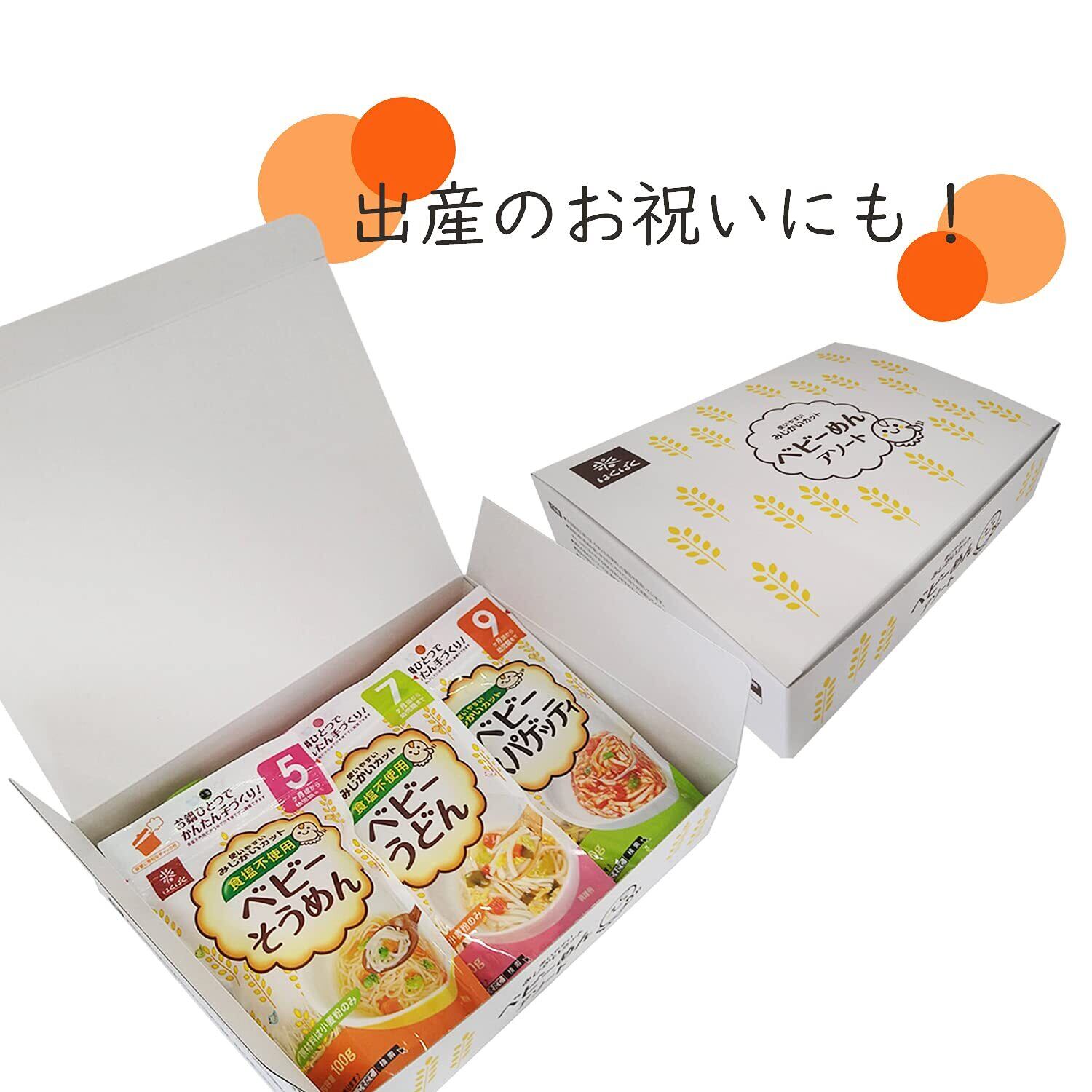 はくばくの食塩不使用ベビーめんシリーズ3種によるアソートボックスです。食塩不使用なので、ゆで汁を捨てずに調理でき、お鍋1つで作れます。お好みのダシや具材と一緒に煮込んでください。また、2.5cmカット麺だから離乳食づくりがお手軽になります。贈り物としてもご利用いただけます。