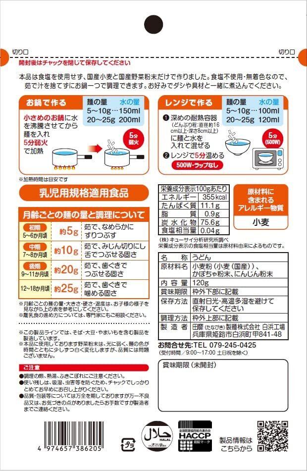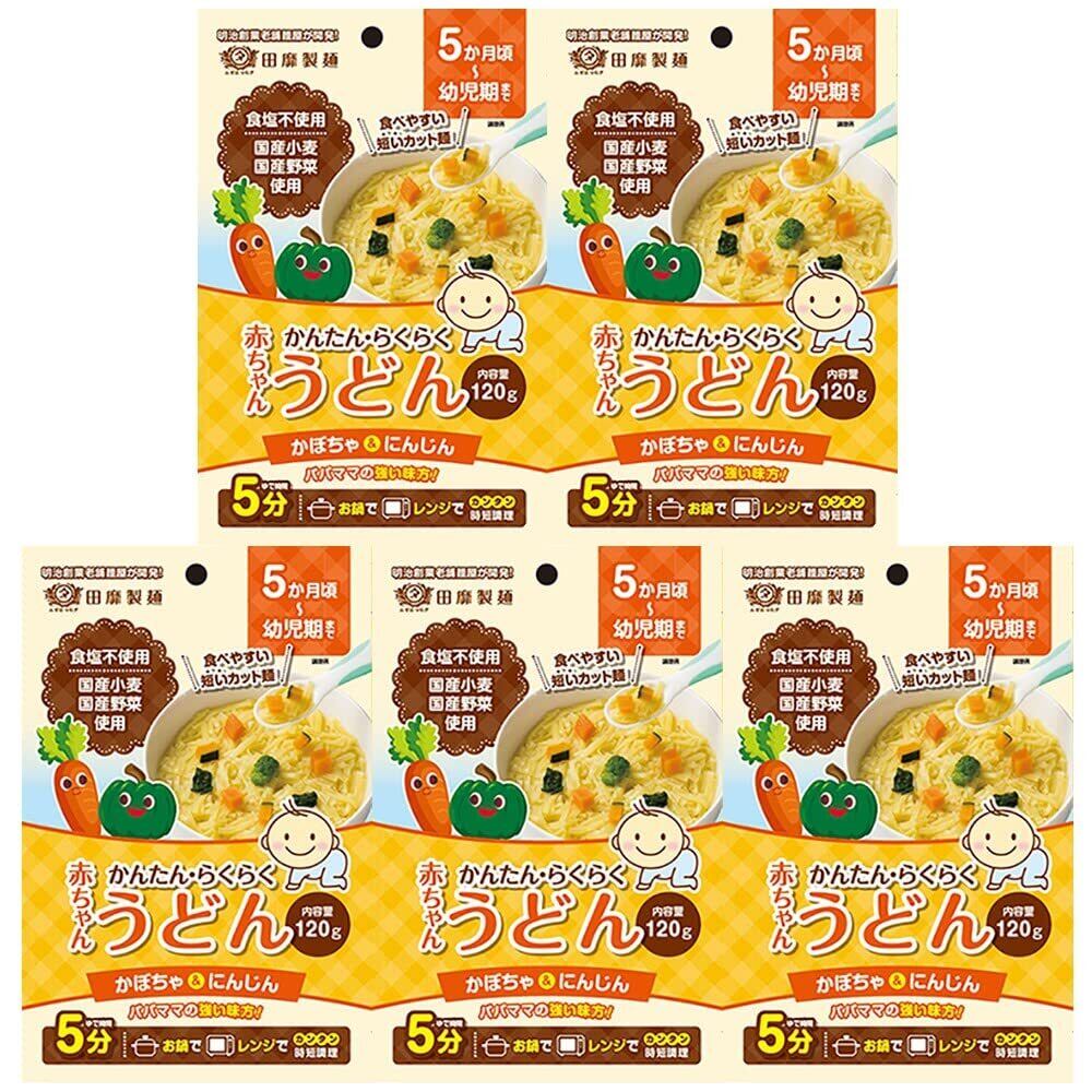 田靡製麵 田靡製麺 赤ちゃんかんたん・らくらくうどん かぼちゃにんじん5個パック 120g×5P