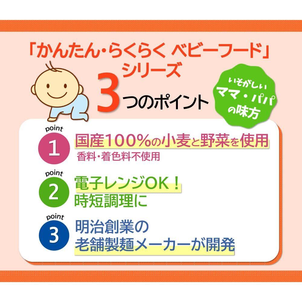 国産小麦・国産野菜使用。,br>食塩不使用で安心安全のベビーうどん。<br>・対象:生後5か月~<br>・独自製麺法でレンジ・鍋ともに調理時間5分に。<br>・内容量120g