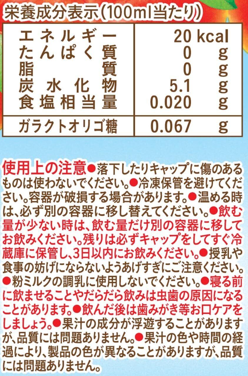 100ml当たり:エネルギー21kcalたんぱく質(g)0脂質(g)0糖質(g)5.3食物繊維(g)0ナトリウム(mg)0~15ガラクトオリゴ糖(g)0.14g