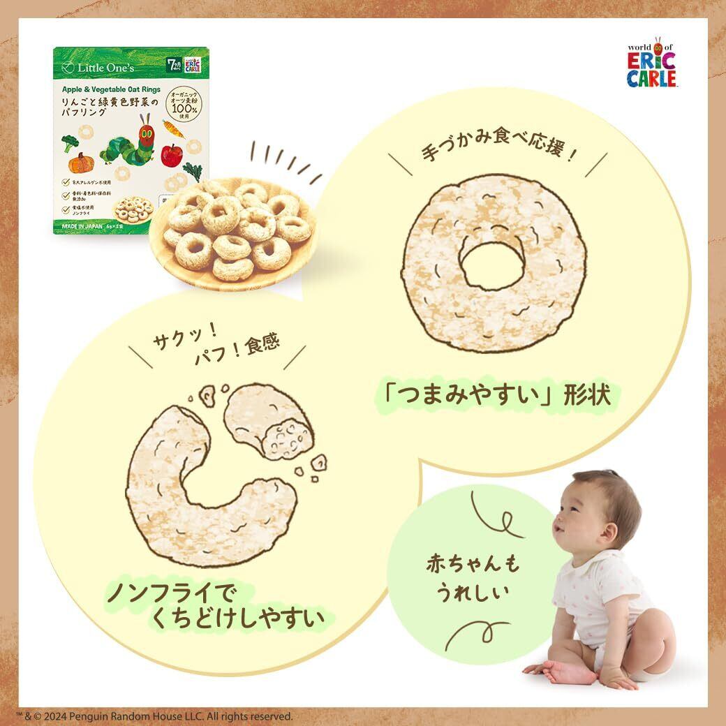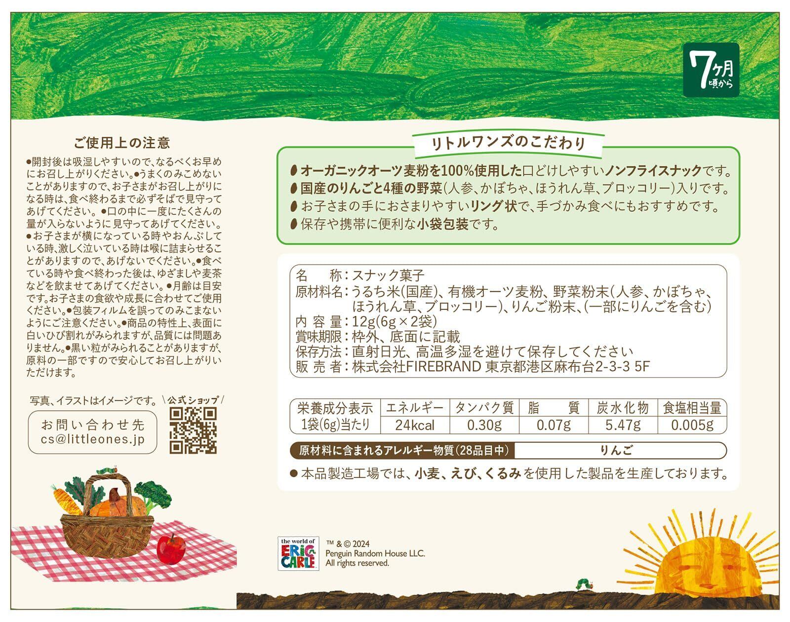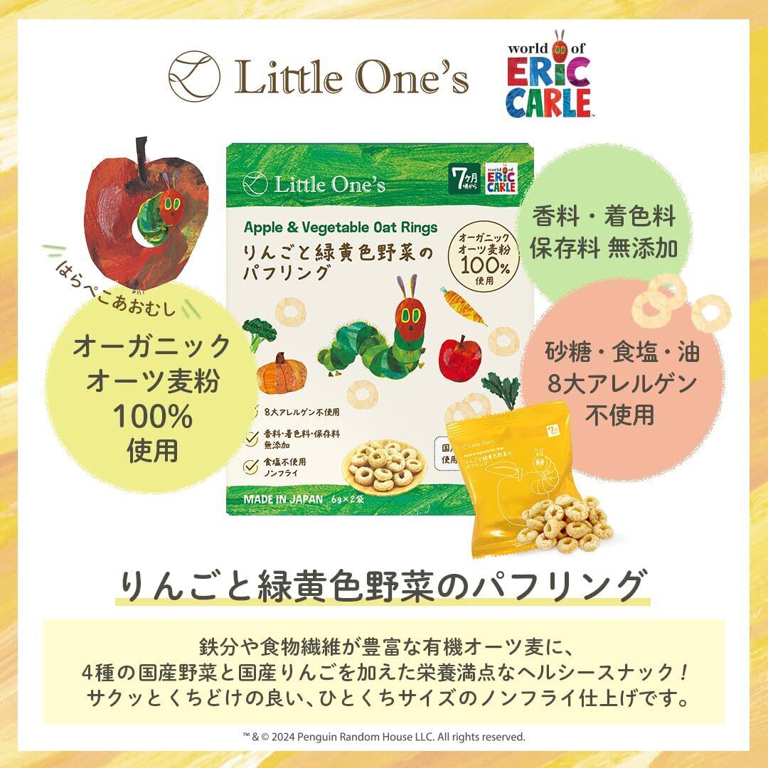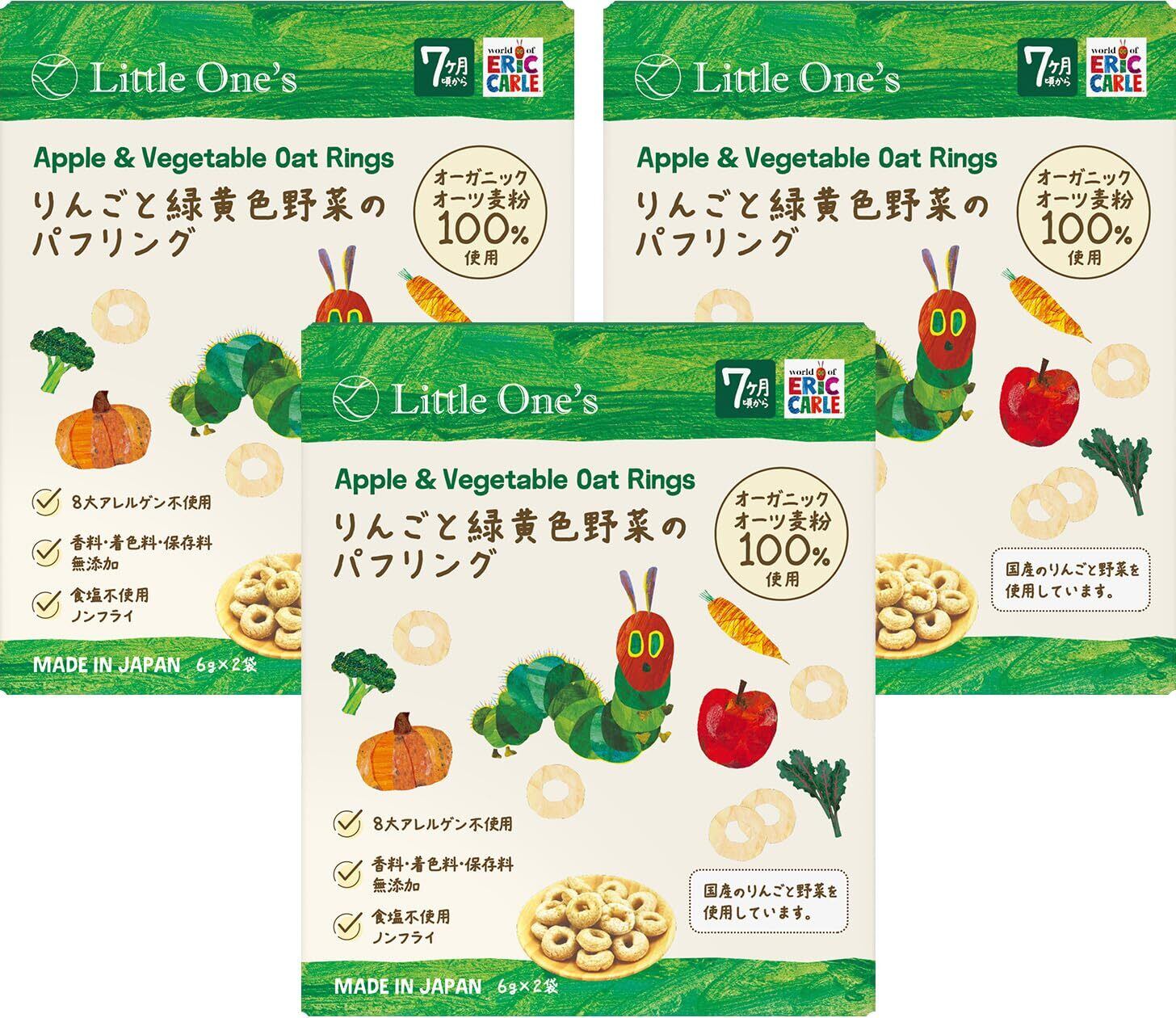 リトルワンズ 無添加 おやつ「りんごと緑黄色野菜のパフリング」 7ヶ月頃から 12g(6g×2袋)×3箱 有機オーツ麦粉使用 食塩砂糖不使用 アレルギー特定原材料8品目不使用 赤ちゃん 手づかみ食べ