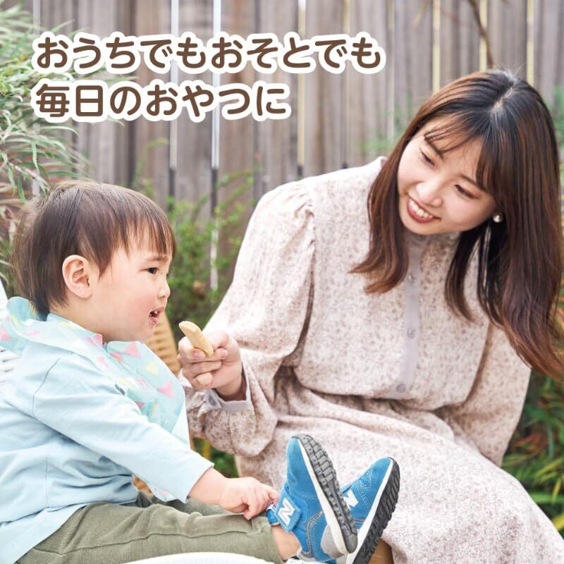 対象月年齢:1歳ごろ〜。原材料:小麦粉(国内製造)、砂糖、マーガリン、グルコマンナンペースト、きな粉、食塩/乳清焼成カルシウム、(一部に小麦・大豆を含む)。サイズ/重量(本体):25×10×63mm/10g(1枚あたり)。生産国:日本。