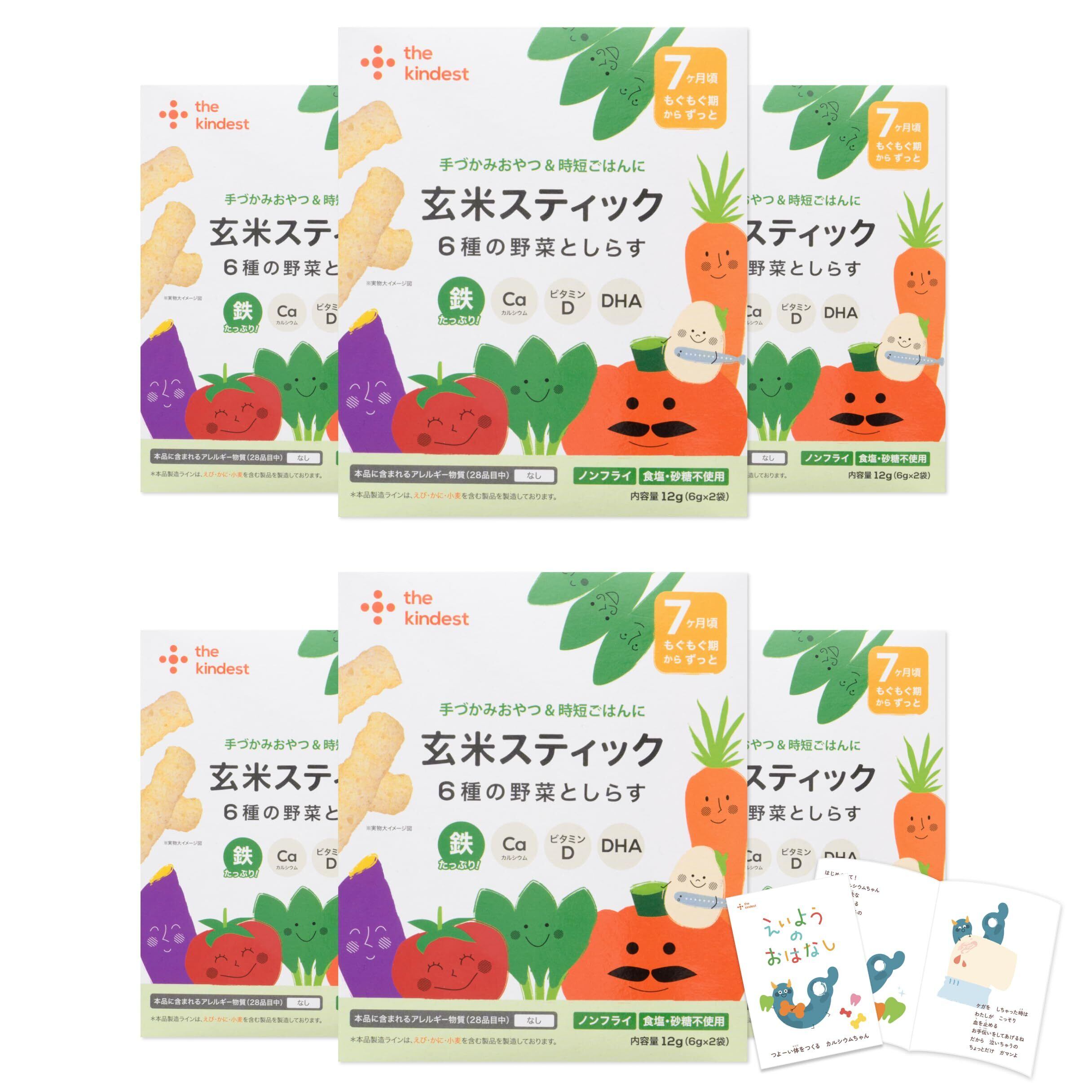 the kindest ( カインデスト )玄米スティック(6種の野菜としらす)えいようのおはなし付き [7ヶ月 から 赤ちゃん おやつ スナック ベビーフード 幼児 発芽玄米 野菜 鉄 ] 6g/2袋×6箱
