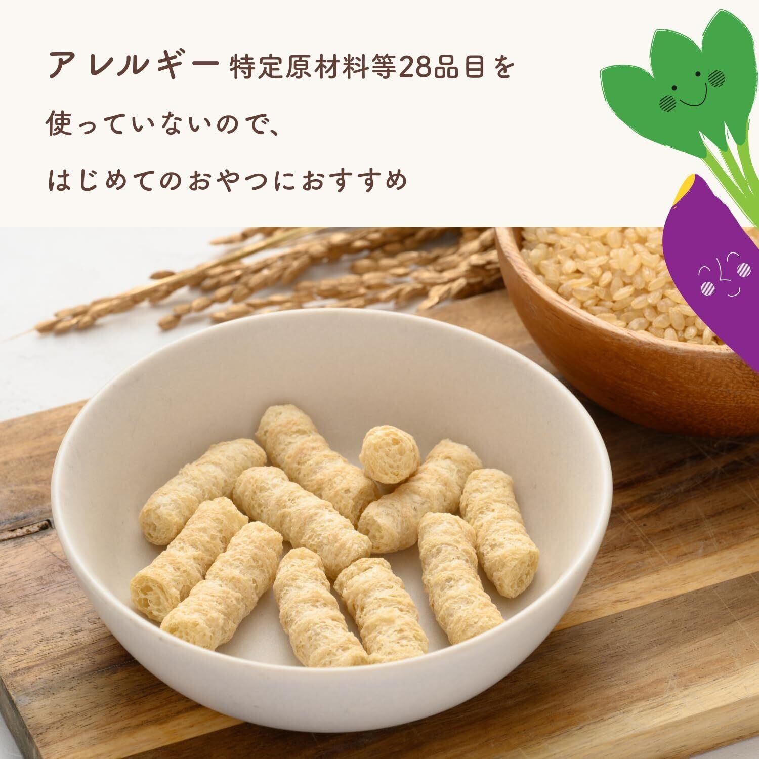 [ 赤ちゃん のためのこだわり ]<アレルギー>特定原材料等28品目を不使用!『 玄米スティック 』は、手づかみ食べが始まるもぐもぐ期から食べることを楽しむぱくぱく期の 赤ちゃん におすすめです。食事では取り切れないエネルギーや栄養素を おやつ で補給しましょう。