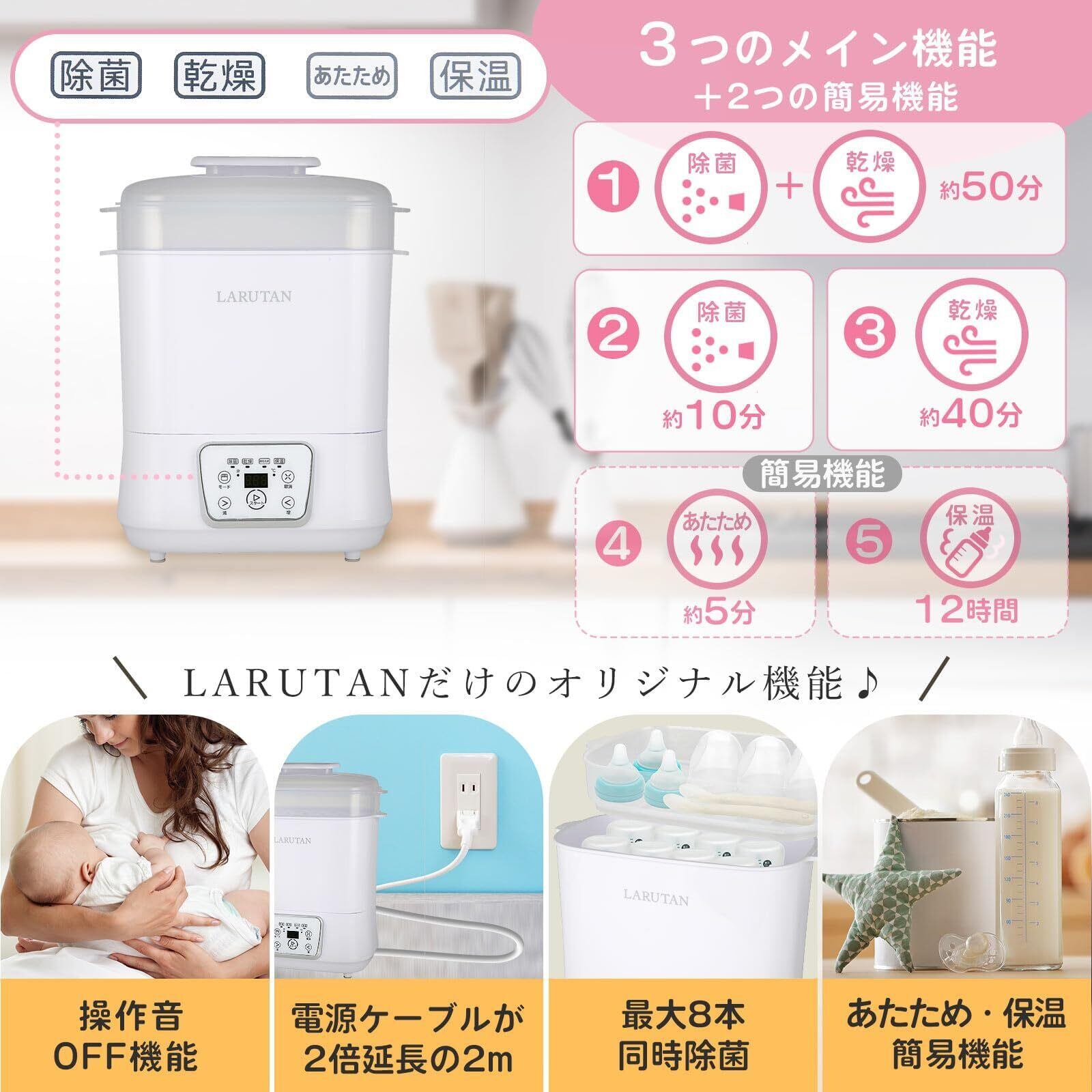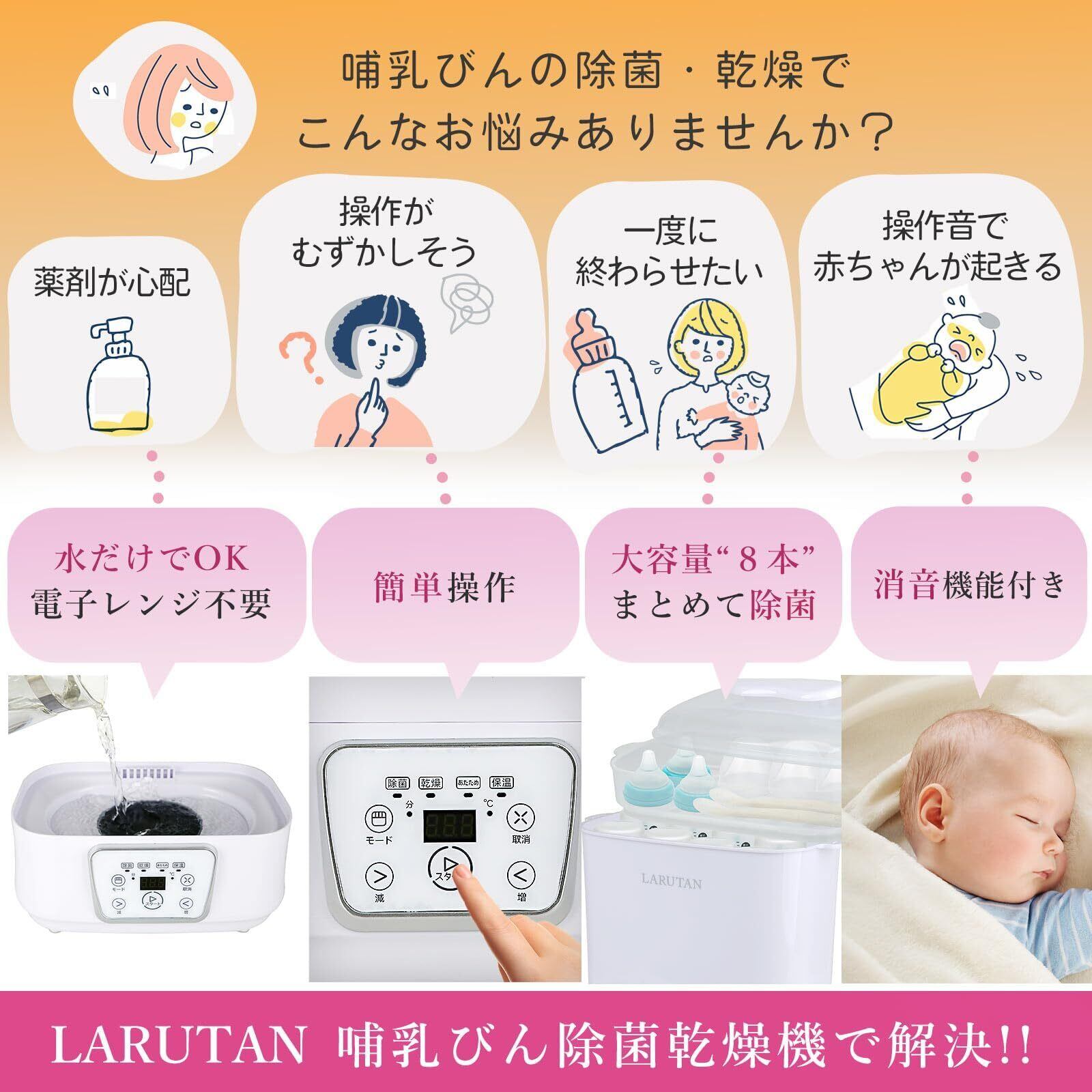 【在庫処分】【助産師さんも推薦】哺乳瓶除菌乾燥機 ミルクウォーマー 哺乳瓶乾燥 除菌 スチーム除菌 哺乳瓶洗い 保管ケース LARUTAN 日本語説明書付き PSE取得 (ホワイト)